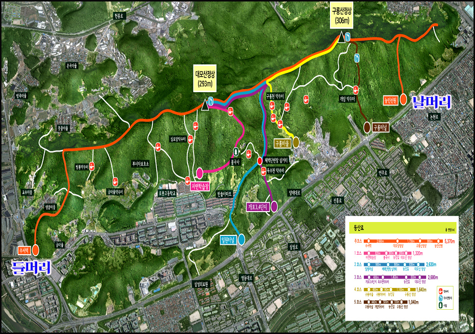 특징: 구룡산은 대모산과 하나의 줄기를 가진 산으로 서초구와 강남구 경계에 걸쳐 있으며 9개의 계곡으로 이루어져 있다. 두 산은 1971년 대모산 도시자연공원으로 지정되어 관리되어 오고 있고 높이 306m의 산으로 높거나 험하지 않아 부담 없이 하는 산행코스로는 제격이다.