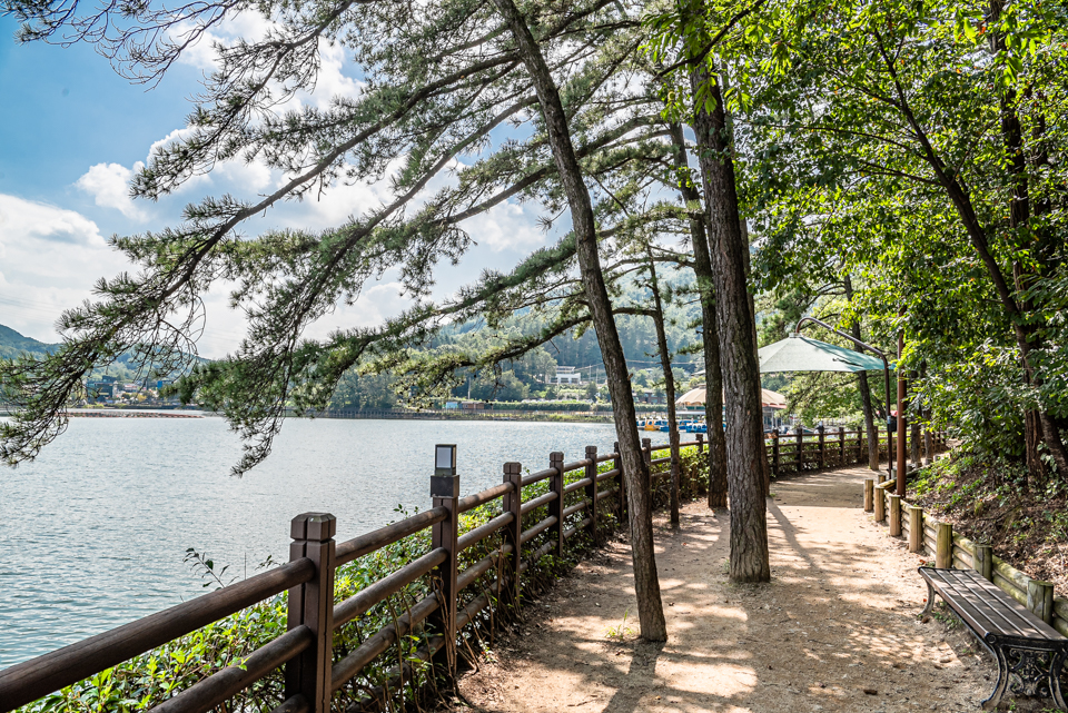 특히 호수 주변으로 생선구이 전문점인 어부촌과 고모리 691 카페, 그리고 한옥카페 부용원이 전망이 좋다.