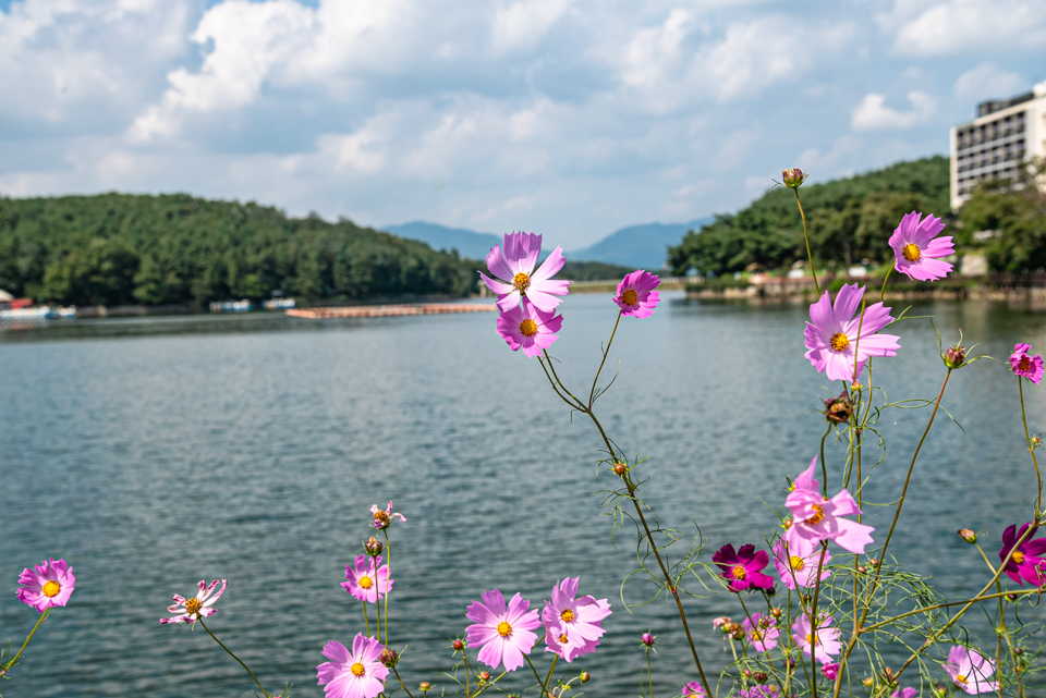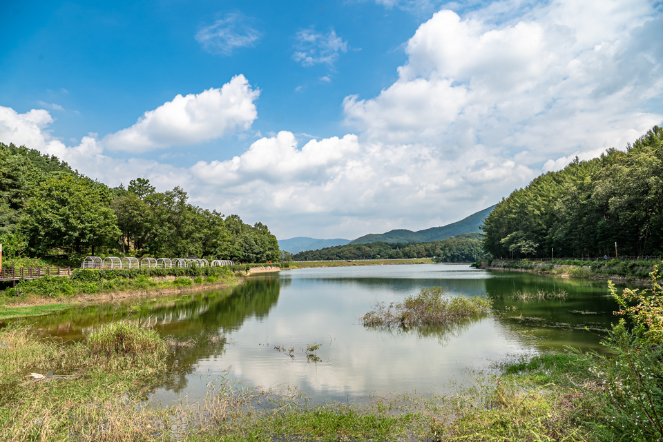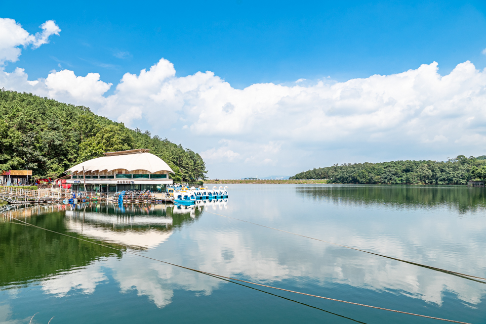 경기도 포천시에 위치한 고모 호수공원은 홍수 예방과 농업용수 공급을 위해 1980년대 만들어졌다.