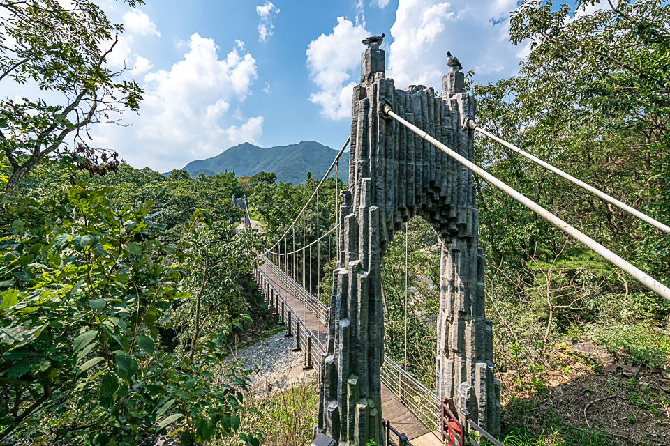 다리가 놓인 곳은 주상절리와 협곡 등 화산암 지대인 한탄강의 경관을 한눈에 볼 수 있다.