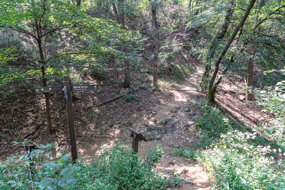 위례 둘레길과 광암 정수장에서 올라오는 길이 만나는 삼거리 이정표.
