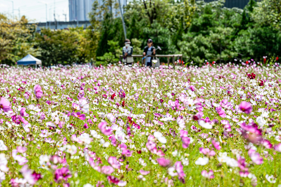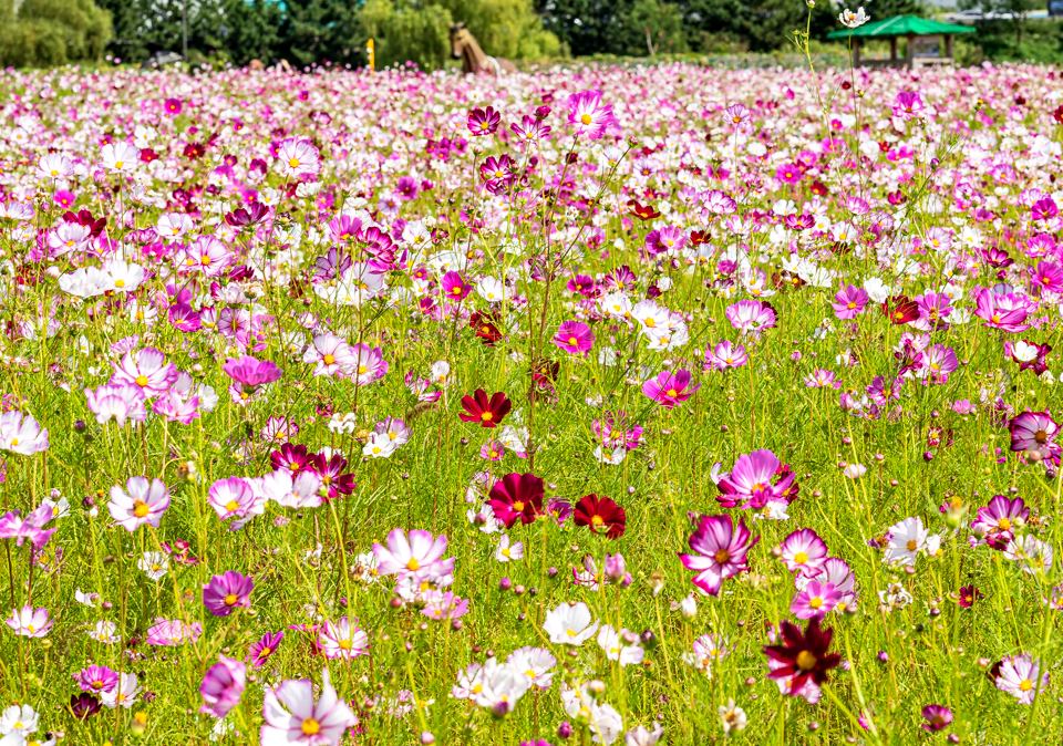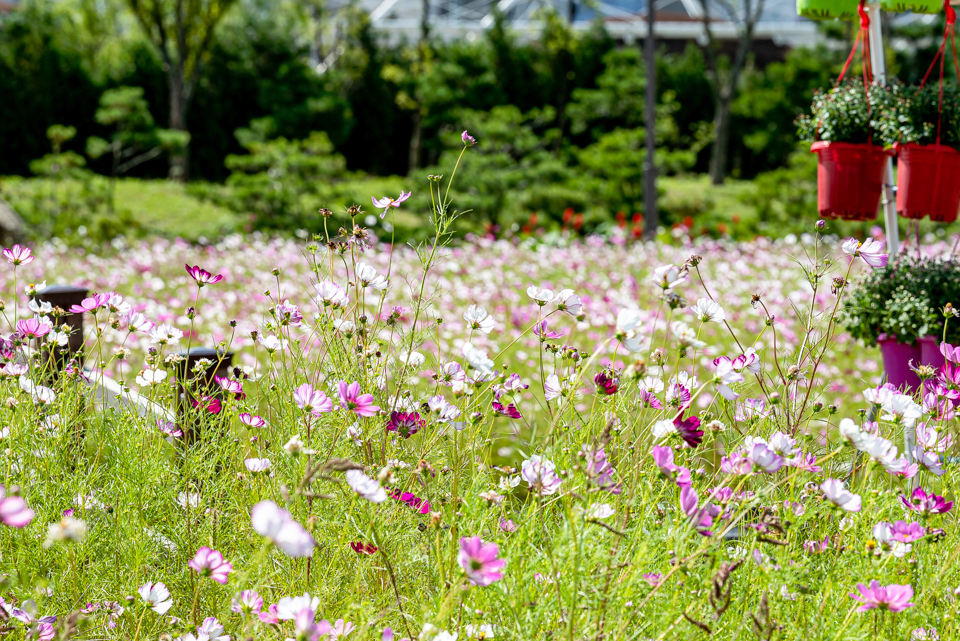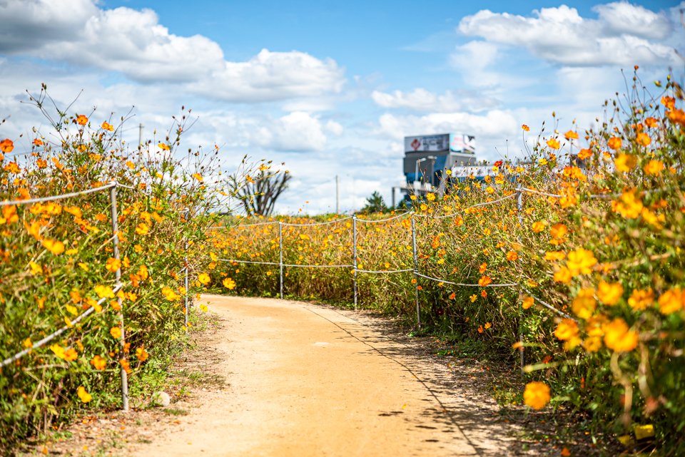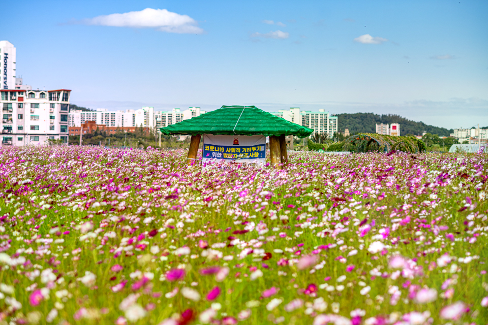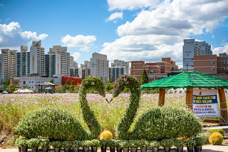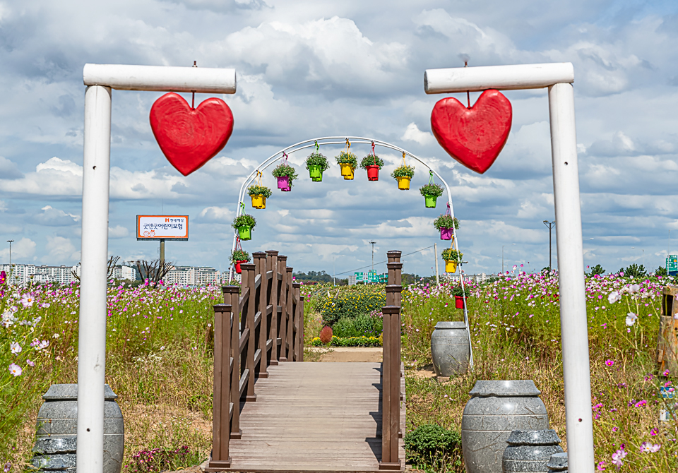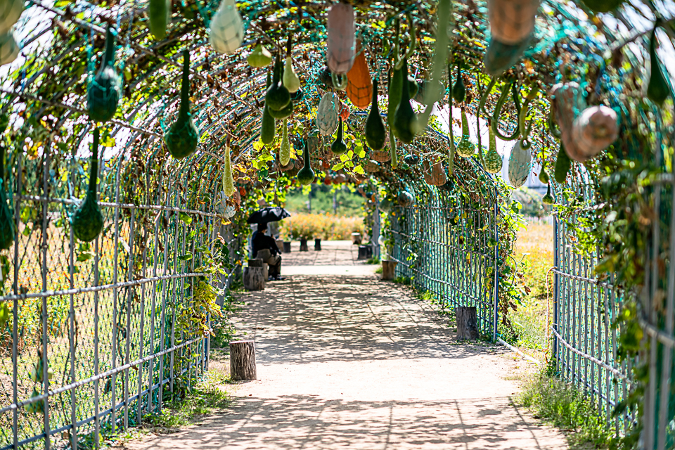 아름답게 수놓은 코스모스와 38가지 다양한 종류의 호박이 영글어 있는 호박 터널을 함께