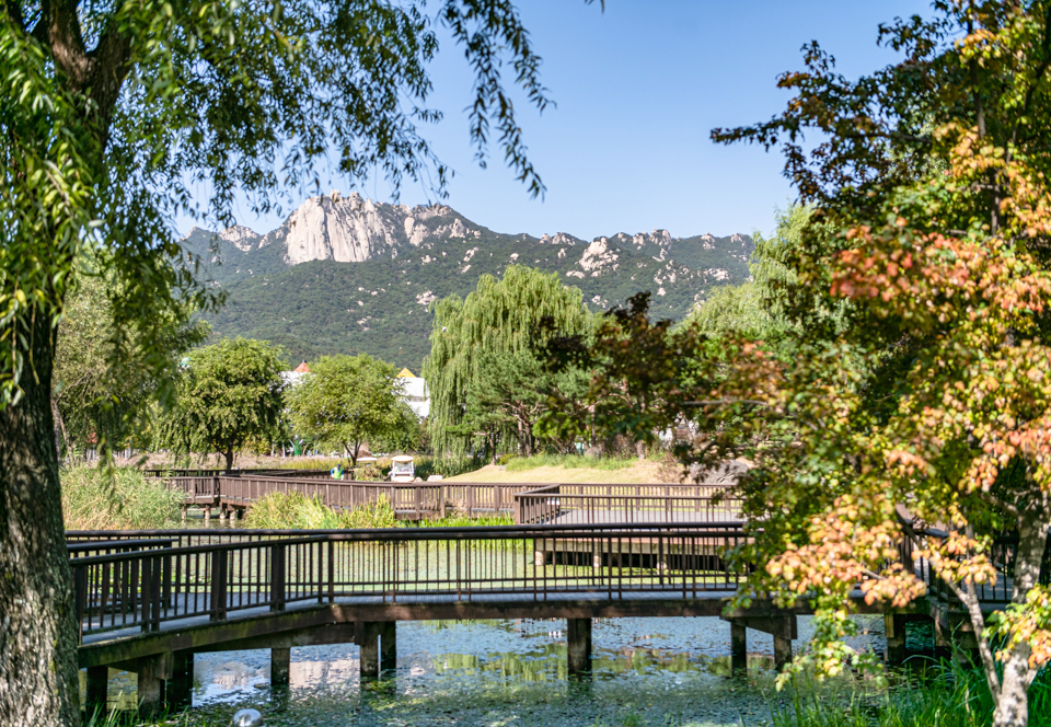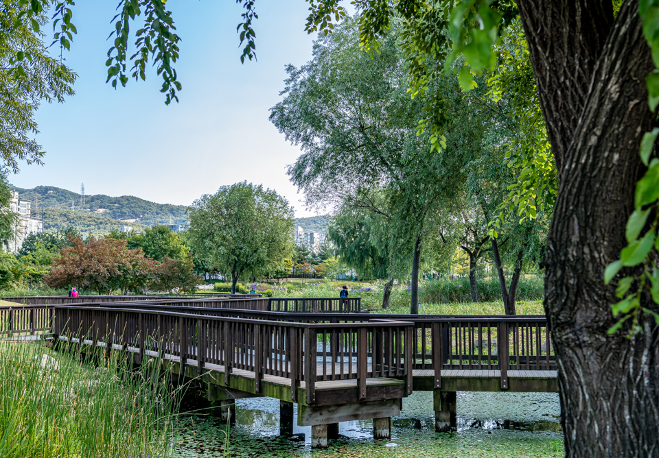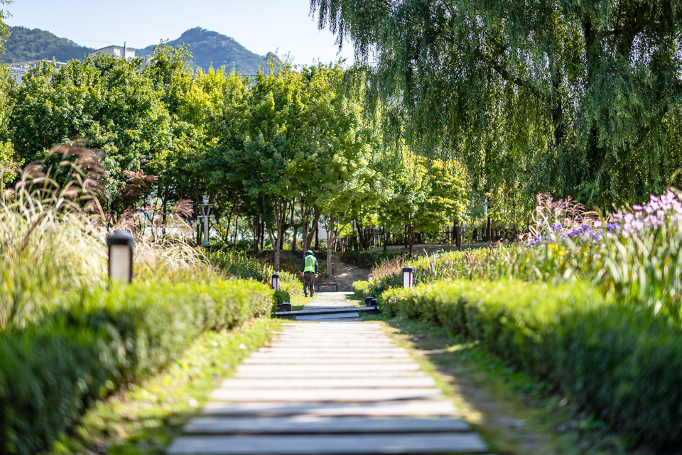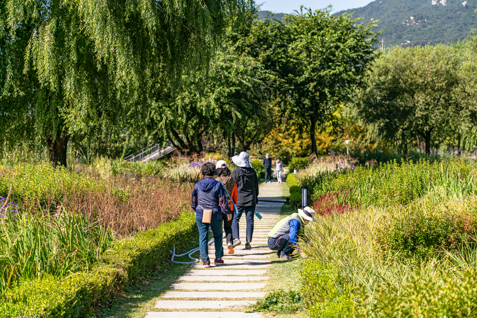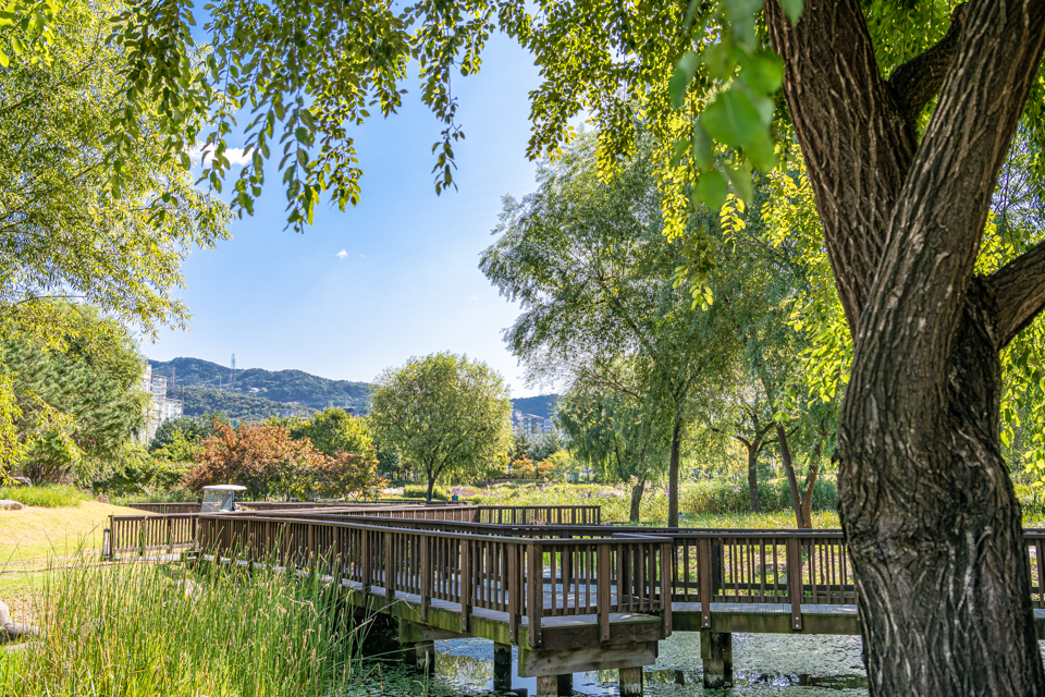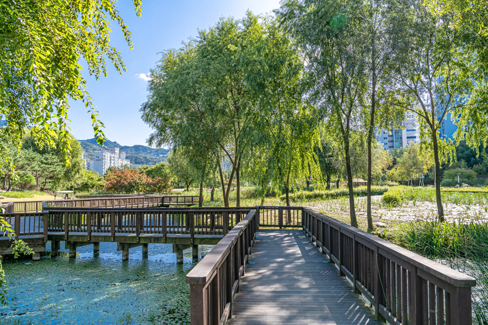 서울 창포원에서는 도봉산과 수락산 경관을 한눈에 조망할 수 있는 장소를 제공하는 곳이기도 하다.