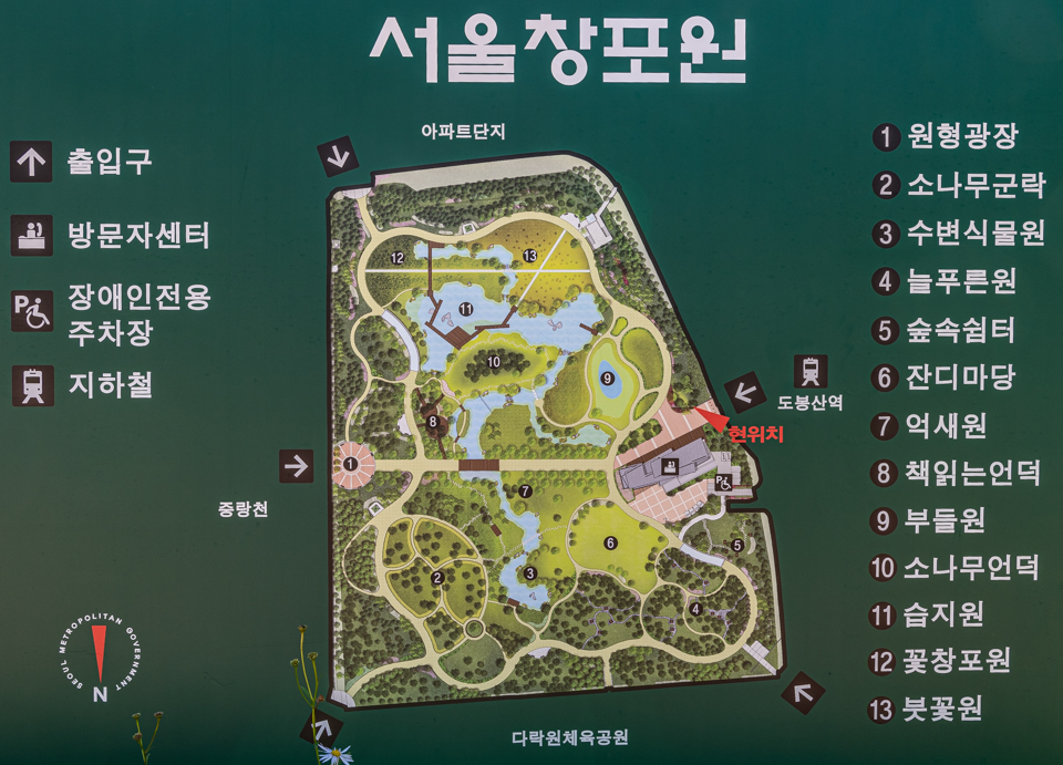 지하철 1, 7호선 도봉산역 2번 출구로 나가면 서울창포원 정문으로 이어집니다.