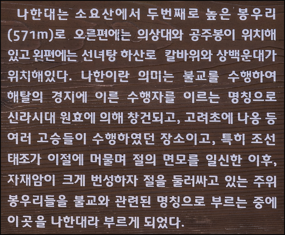 오묘한 정취를 발산하며 산 정상인 의상대(587m)와 하백운대, 중백운대, 상백운대,