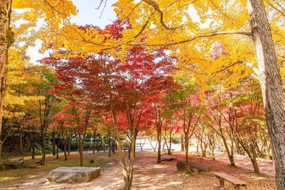 한낮 더위를 피할 수 있으며 가을 단풍은 봄철의 꽃 같다고 할 정도로 그 화려함이