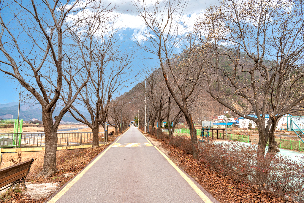 가평교를 건너 둑길을 따라간다.