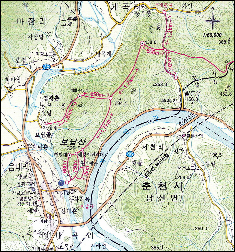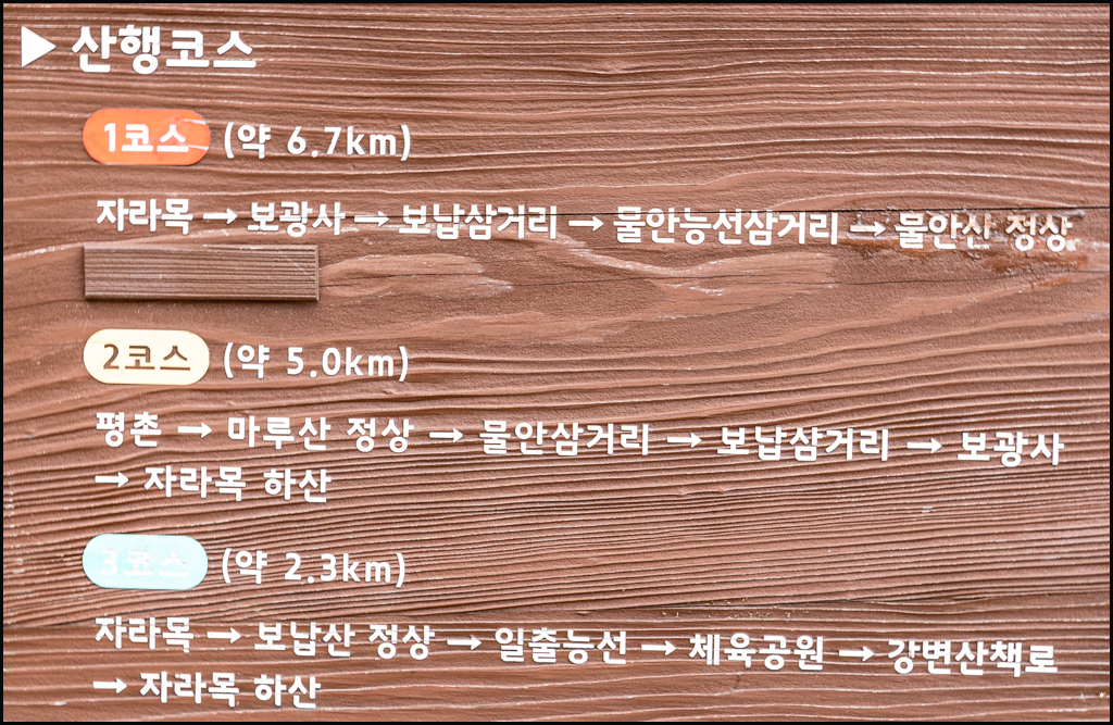 2. 평촌 - 마루산 - 물안 능선 - 보납 삼거리 - 보광사 - 자라목 (5.5km)