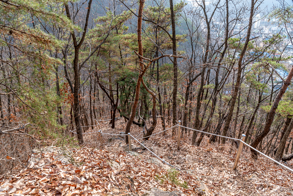 하산길은 급경사라 조심해야 한다.