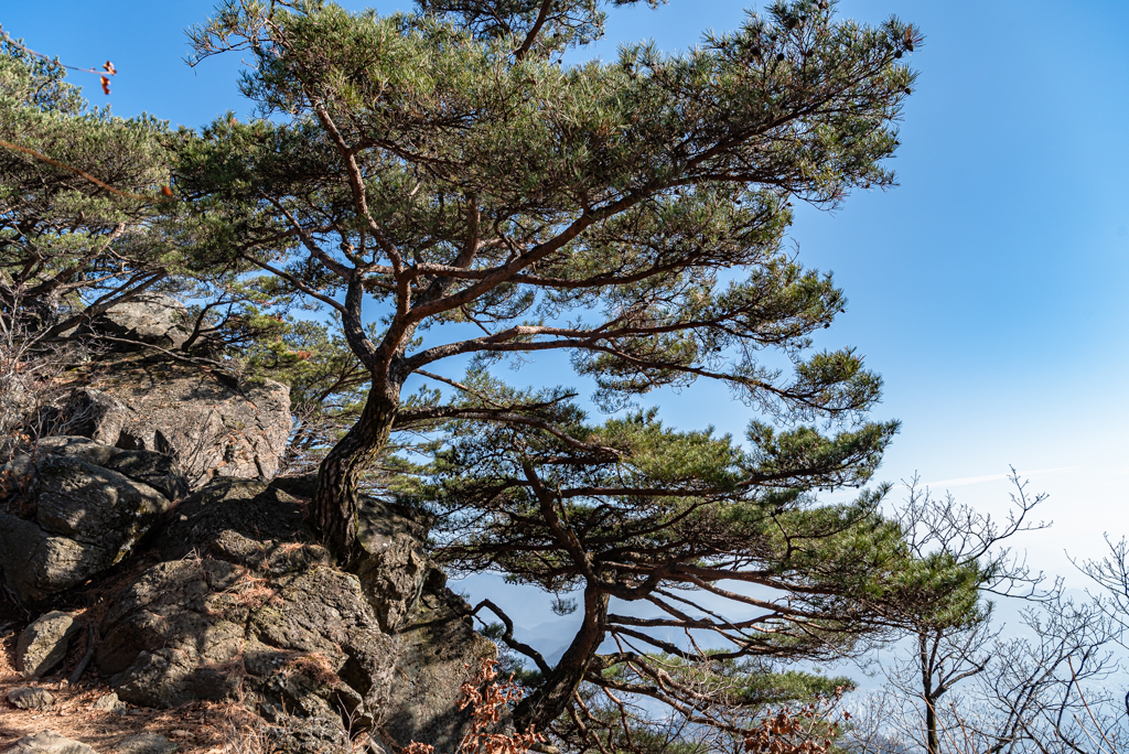 2.1km의 급경사를 올라 주 능선인 상의바위 삼거리에 도착한다.