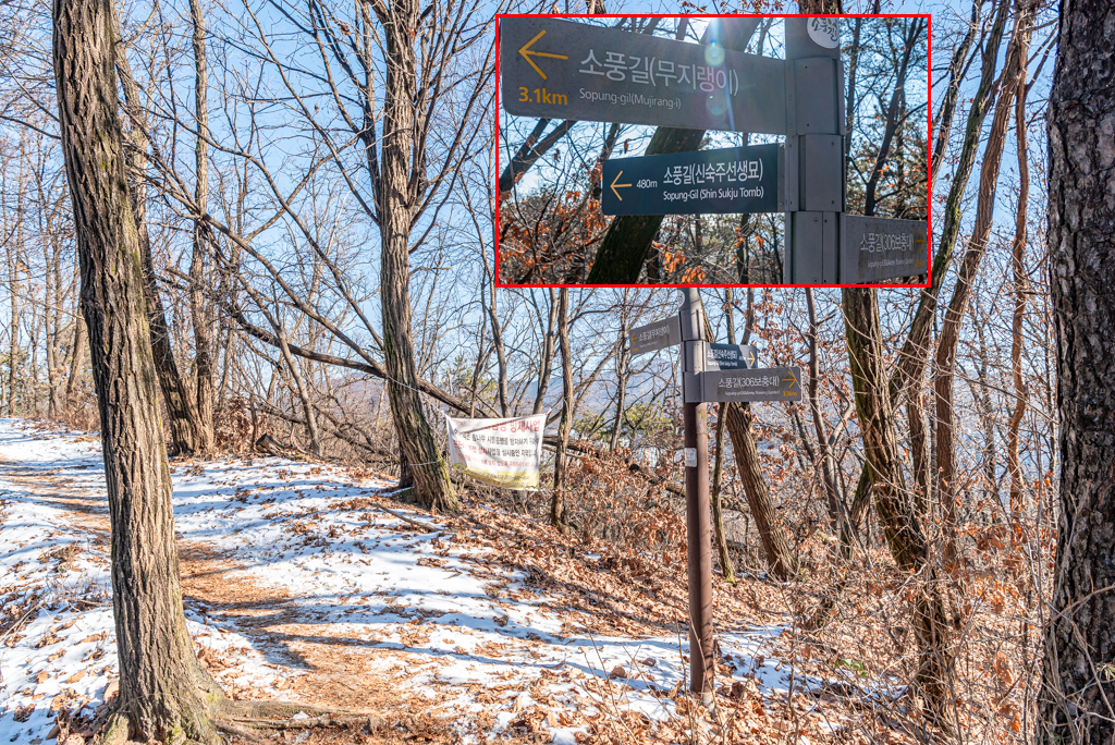 소풍길(무지랭이) 이정표를 따라가야 한다.