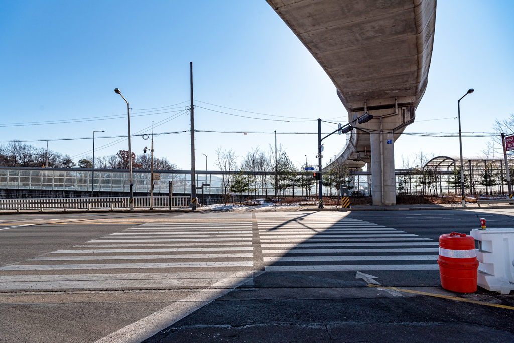 송산 1교 횡단보도를 건넌다.