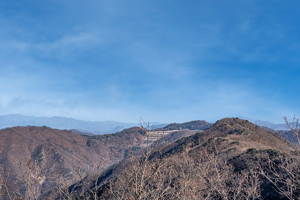 너른 헬기장이 있는 정상에 서면 용문산, 축령산, 대금산 등의 봉우리가