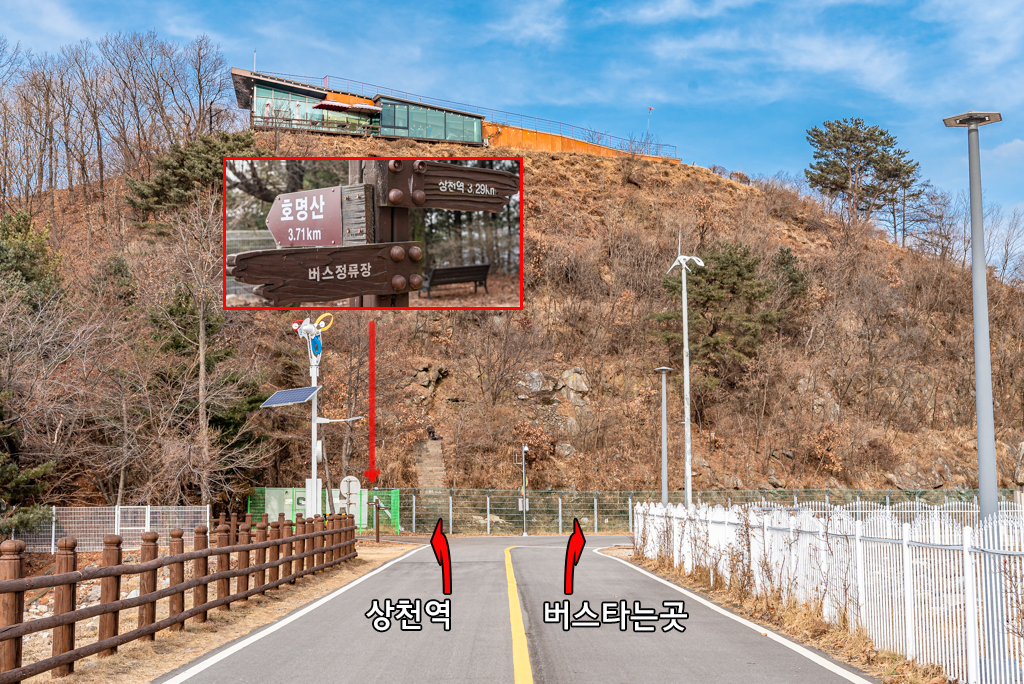 상천역에서 버스로 호명호수까지 이동.