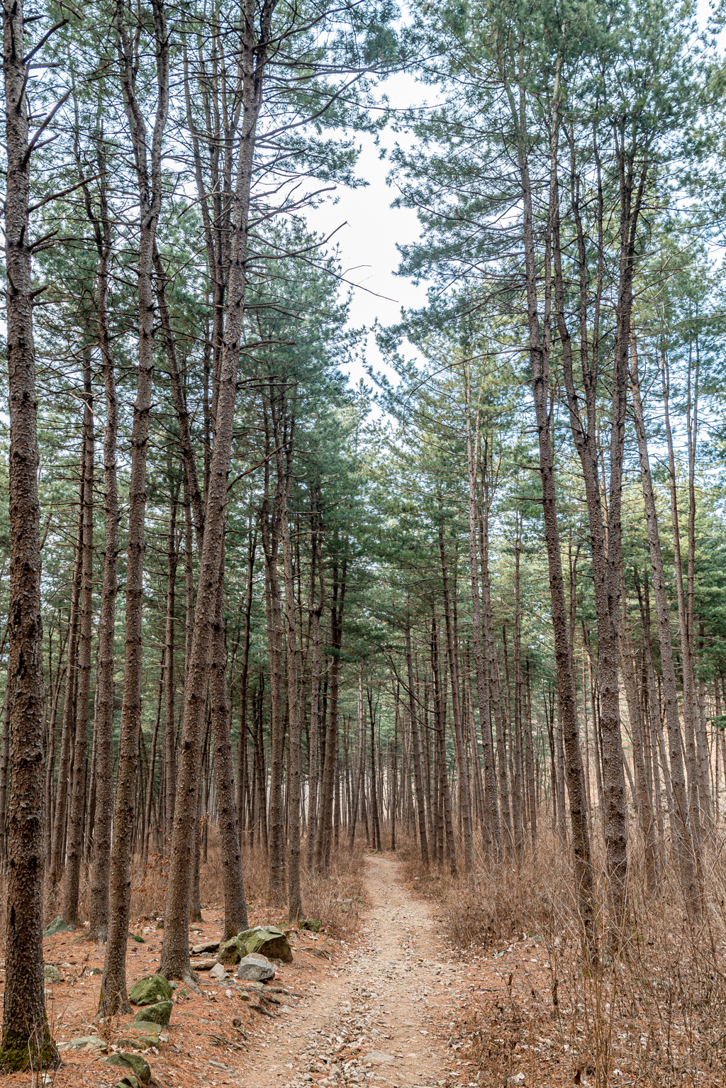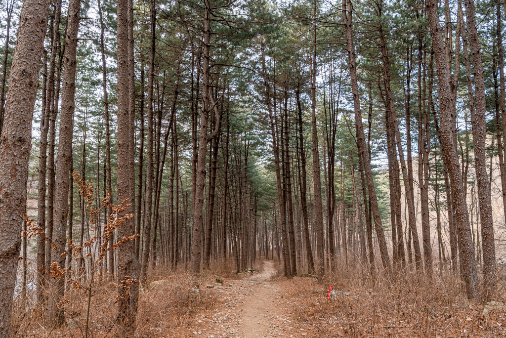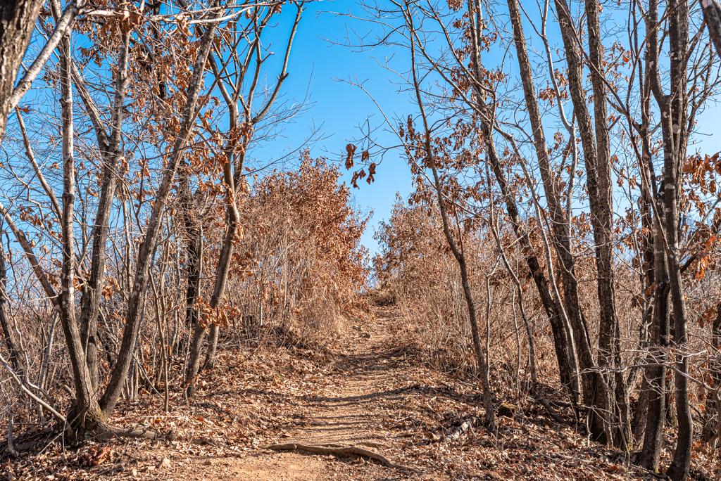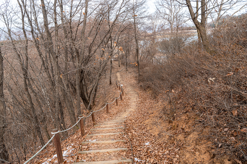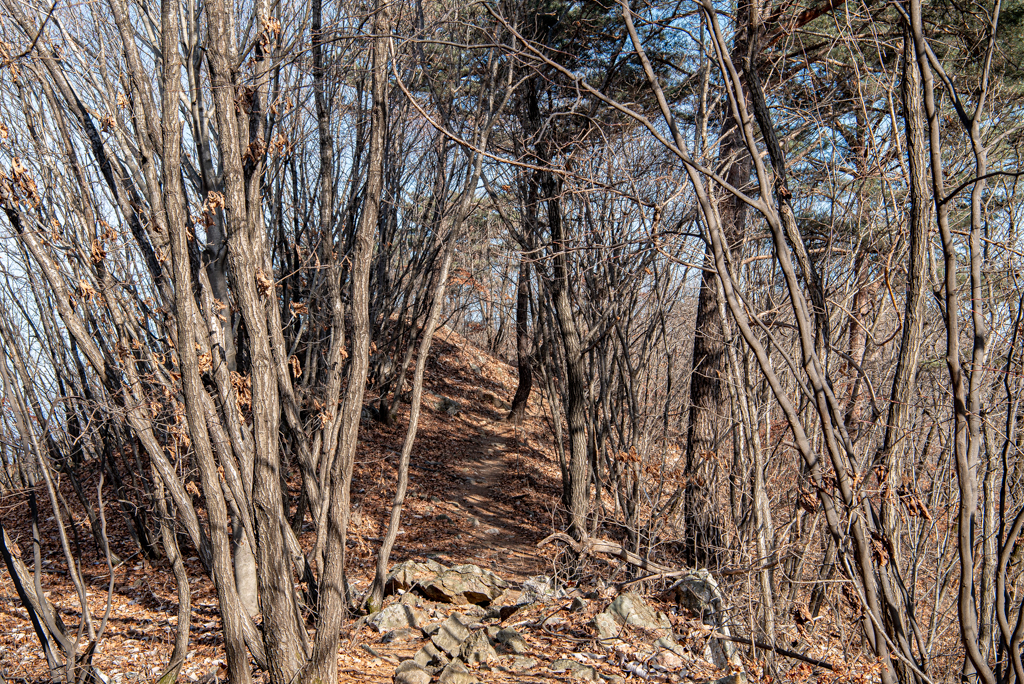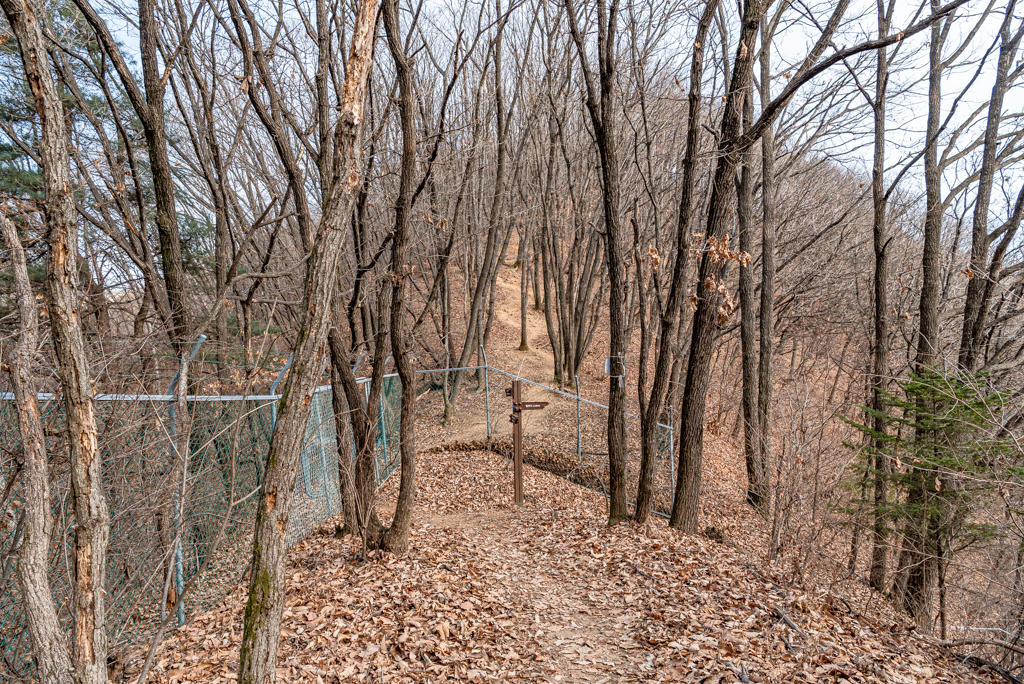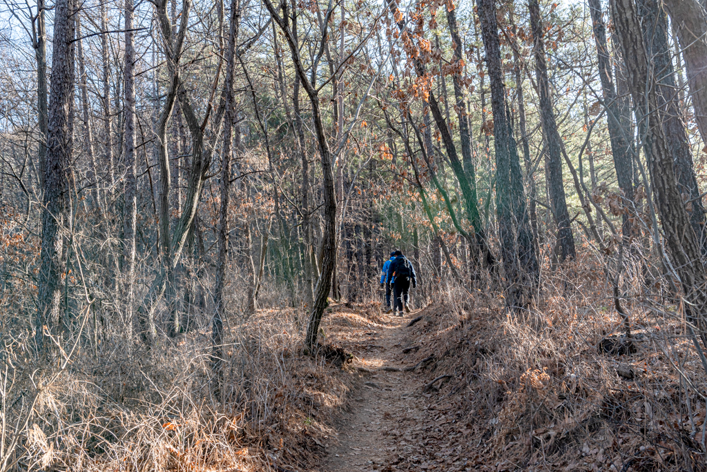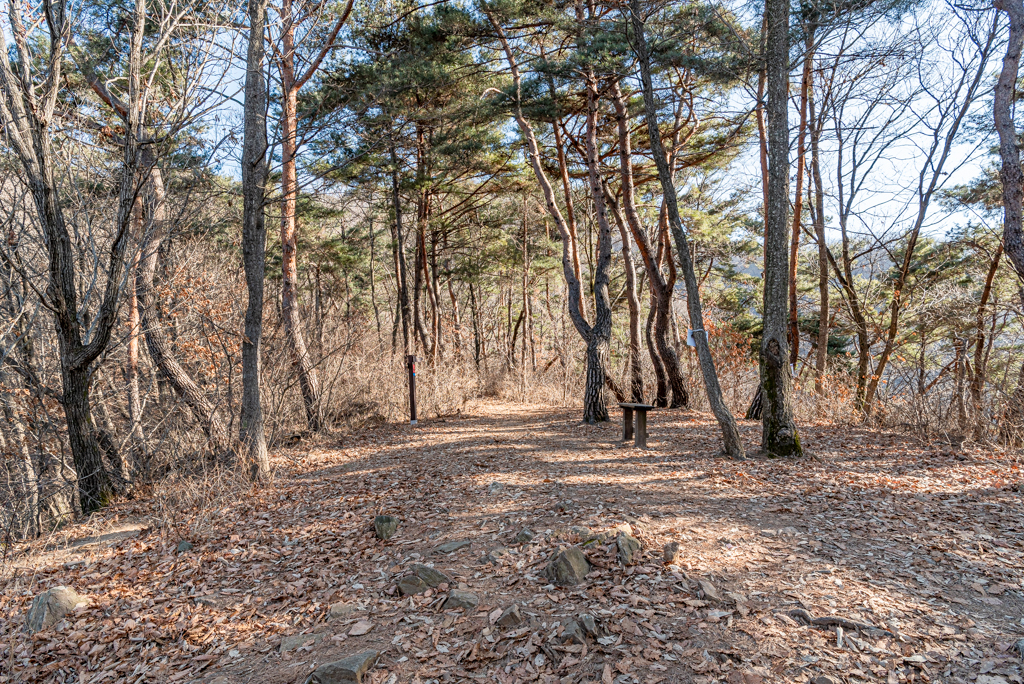 호명산 정상부에서 호명호수까지는 일자 능선길이다.