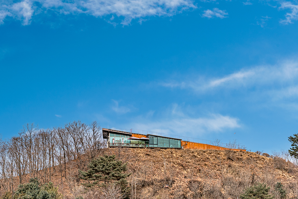 호명산의 모든 풍경이 한눈에 들어오는 멋진 테라스가 있는 호명산 갤러리카페.