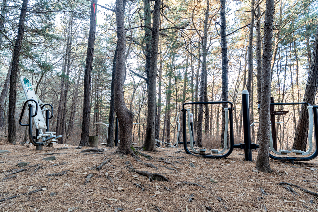 초입 운동기구가 있는 쉼터.