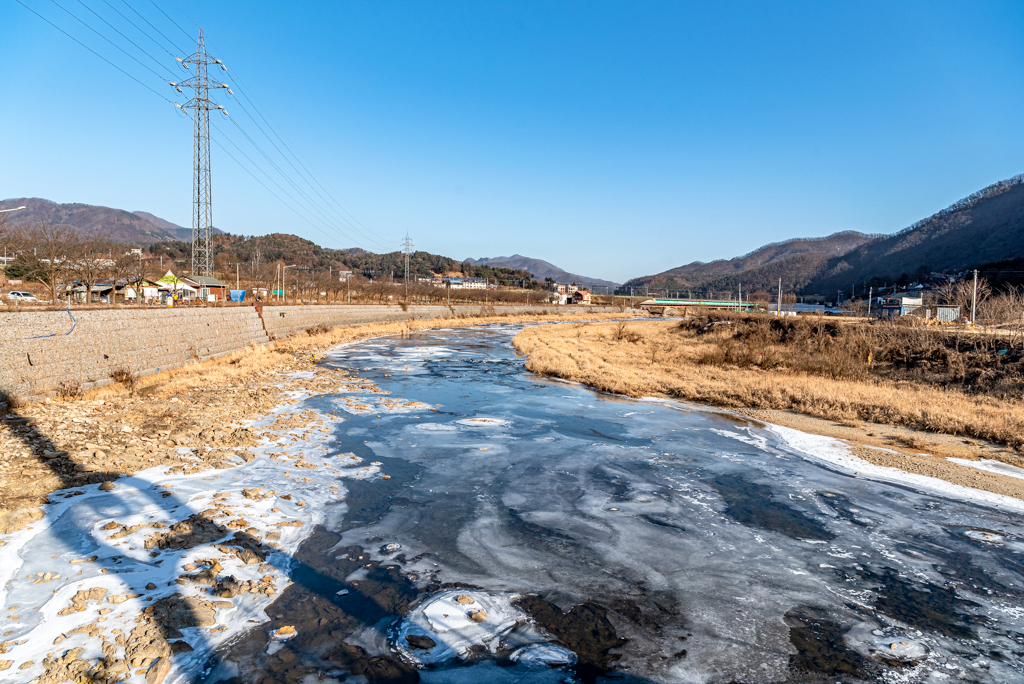 얼어붙은 조종천의 모습.
