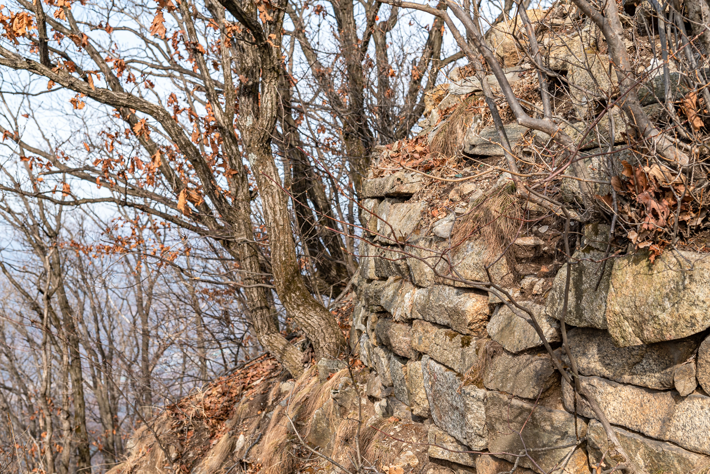 정상부근에 있는 성터.
