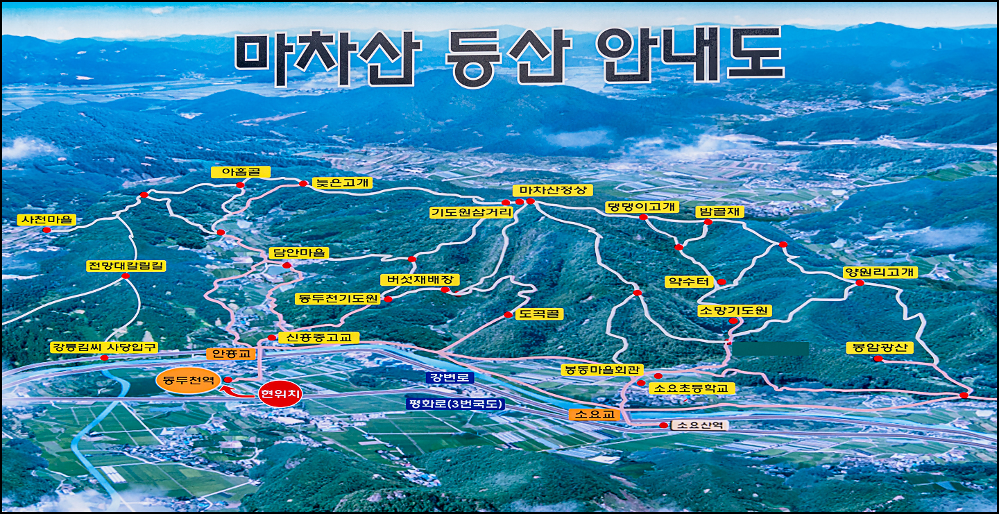 보산역 - 동광교 - 예가성 - 만수약수터 - 통신탑 - 봉암리고개 - 마차산 남쪽 능선 -정상
