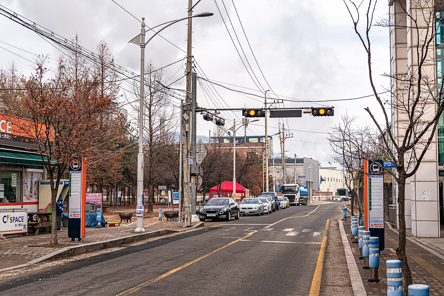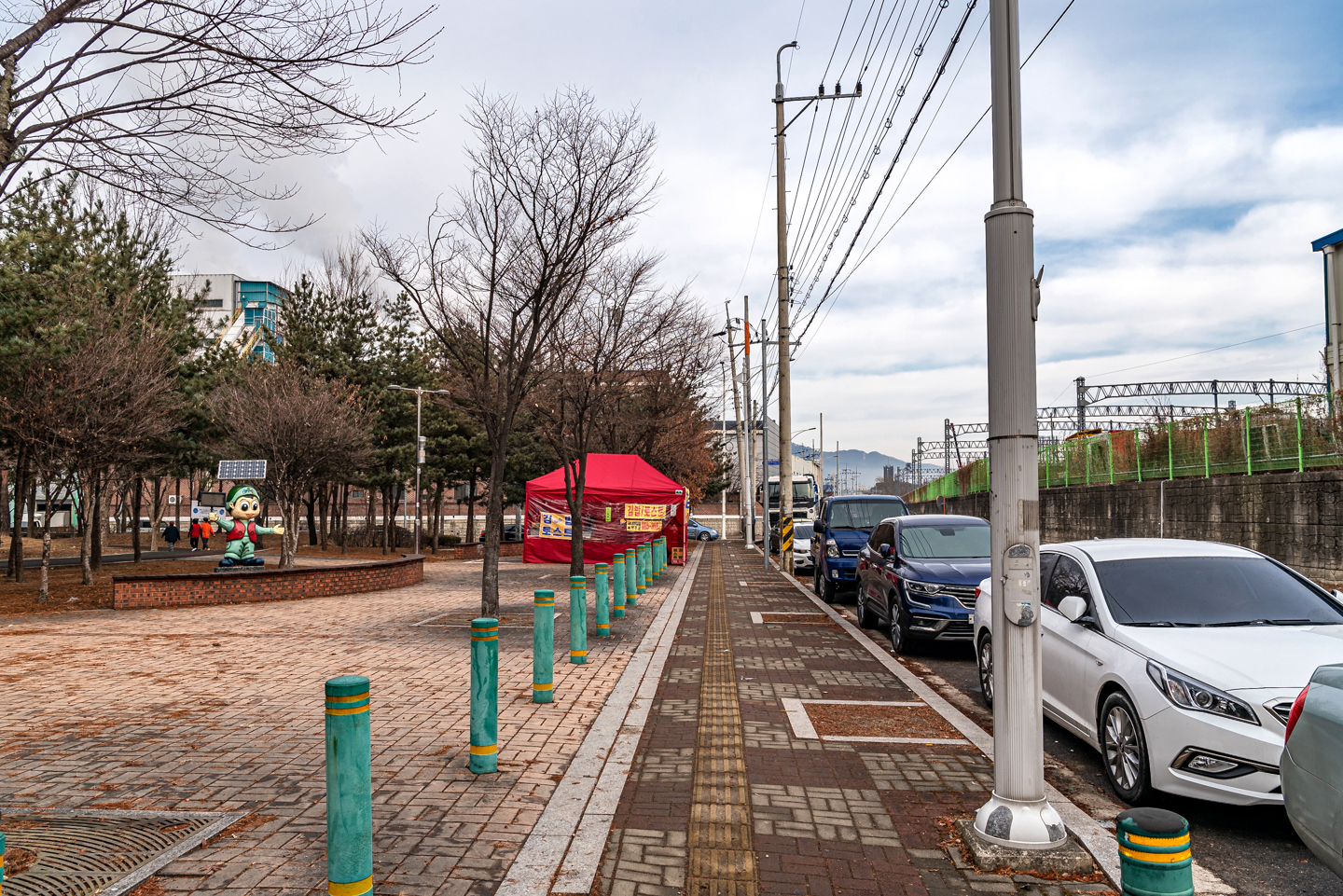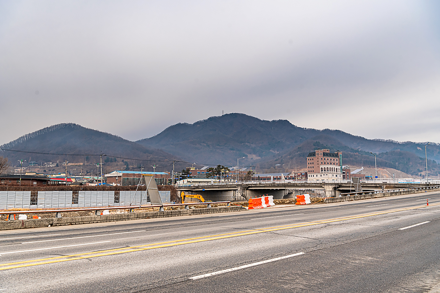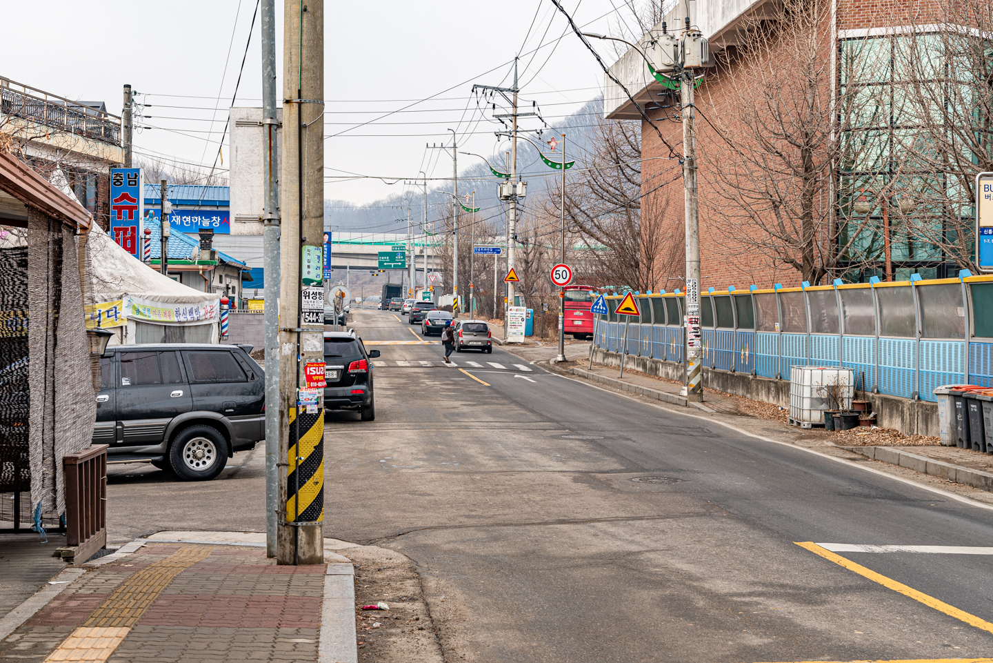 앞에 보이는 교각 밑으로 해서 도로를 건너 우측으로 가면 된다.