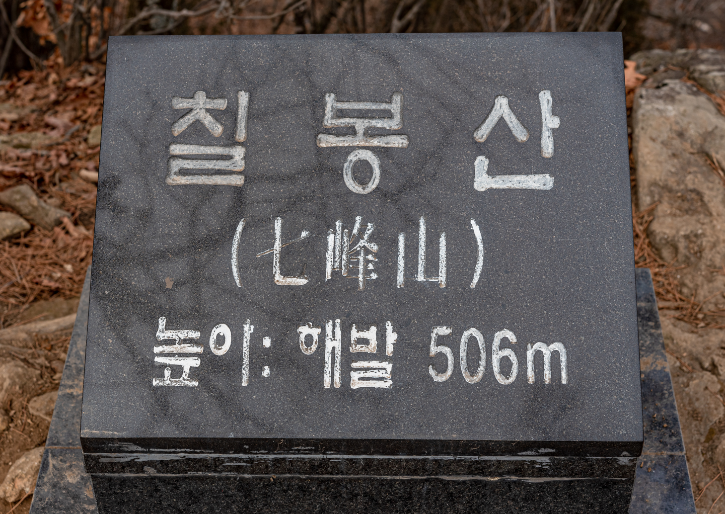 칠봉산 정상(돌봉)까지 4km로 표기되어 있다.