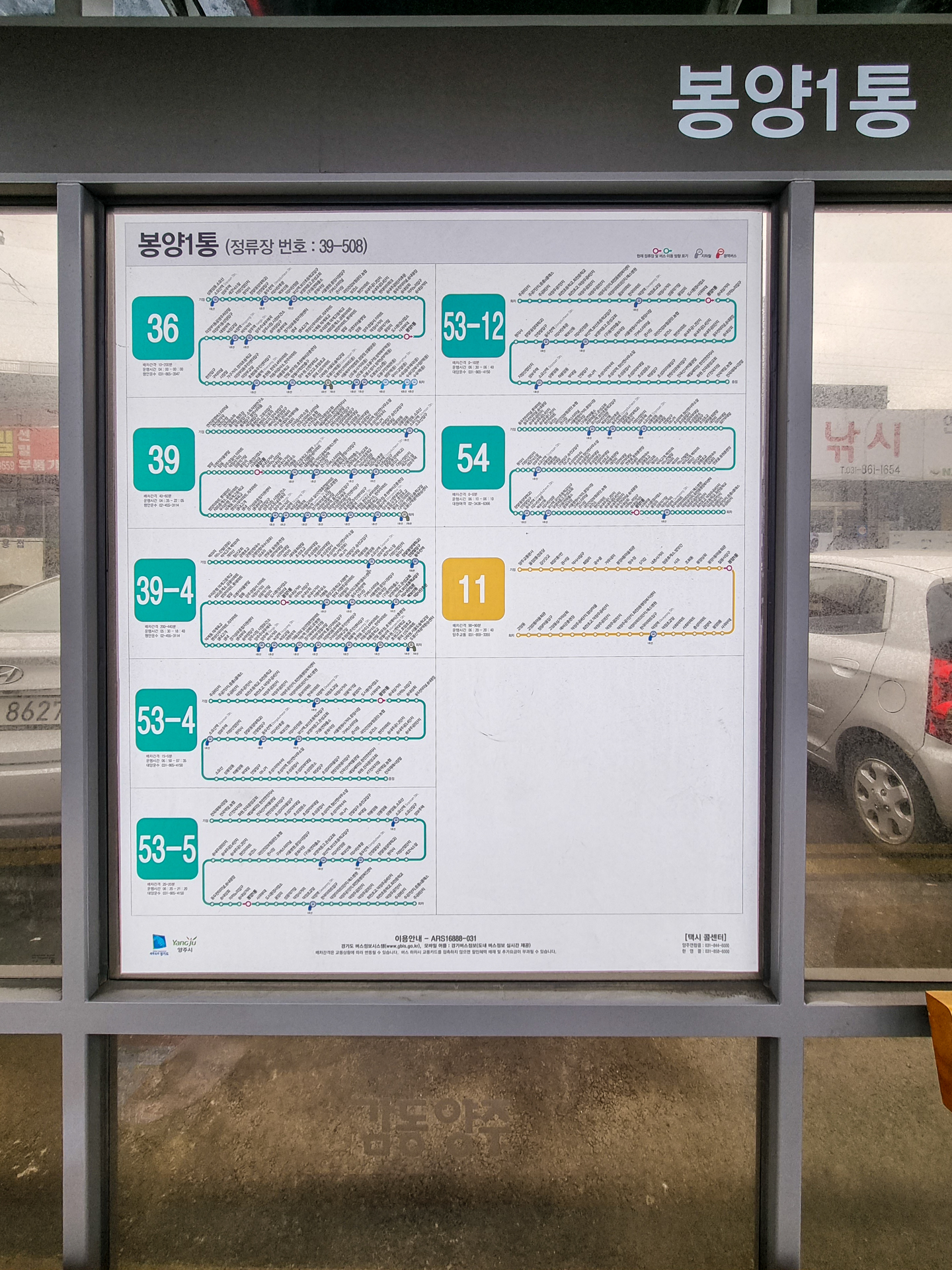 양주역이나 덕정역에서 버스를 이용하여 이곳 봉양 1통 버스정류장에서 내려야 한다.