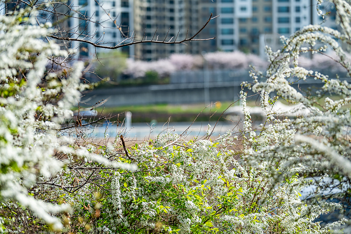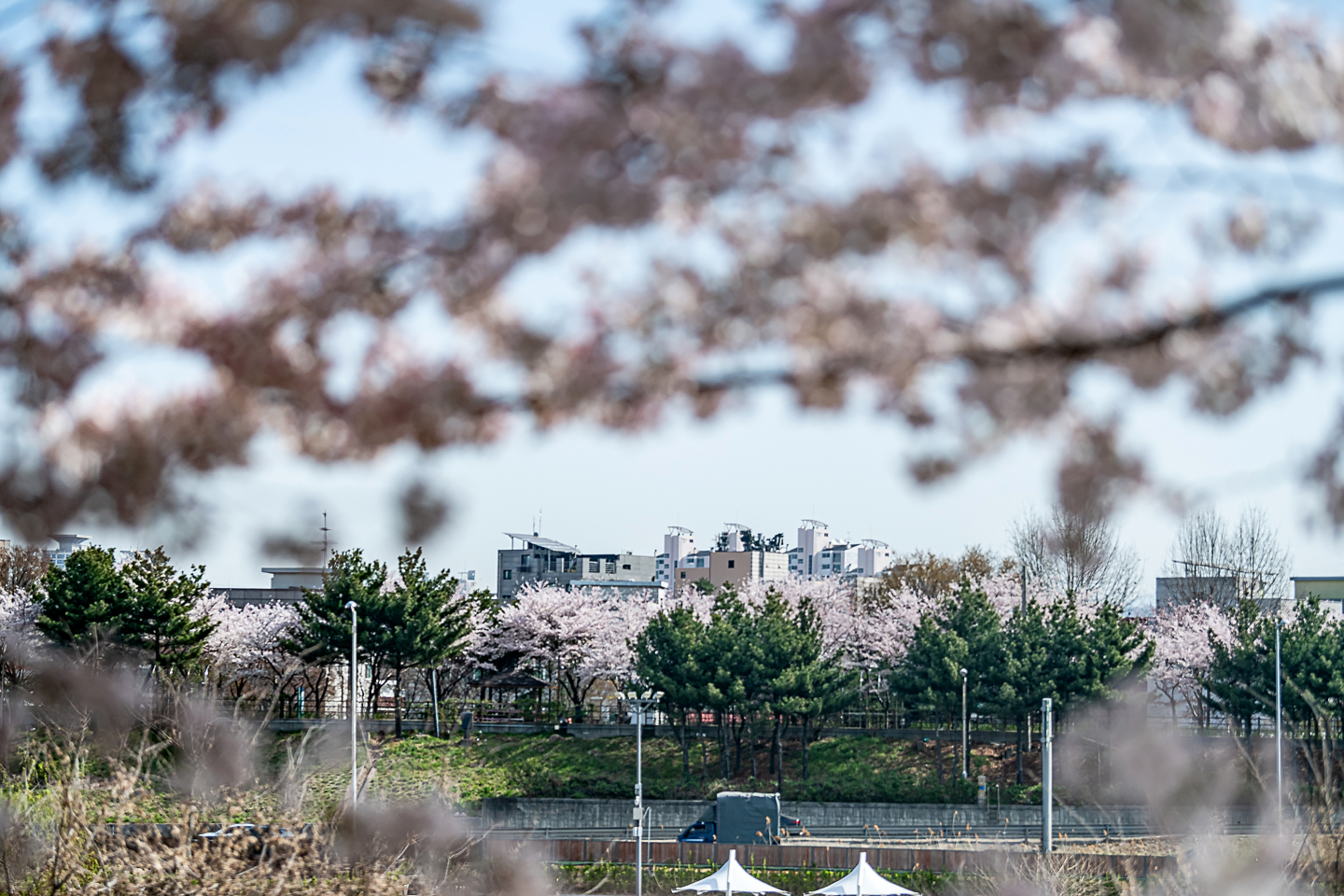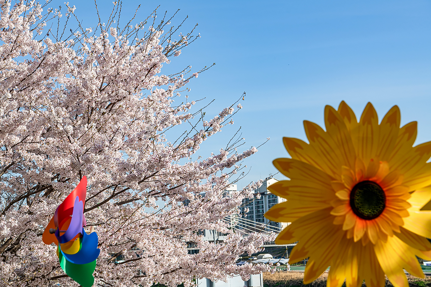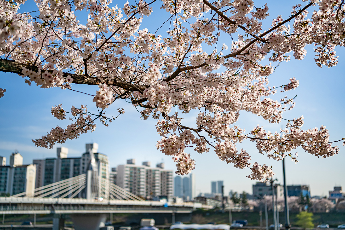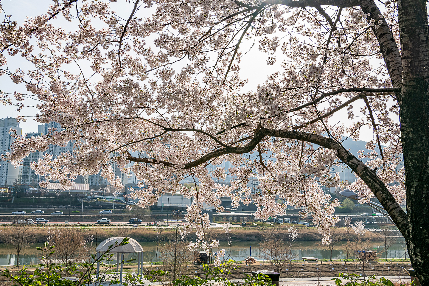 장안동 중랑천 벚꽃길에 벚꽃 터널과 함께 개나리, 목련, 철쭉, 산수유 등