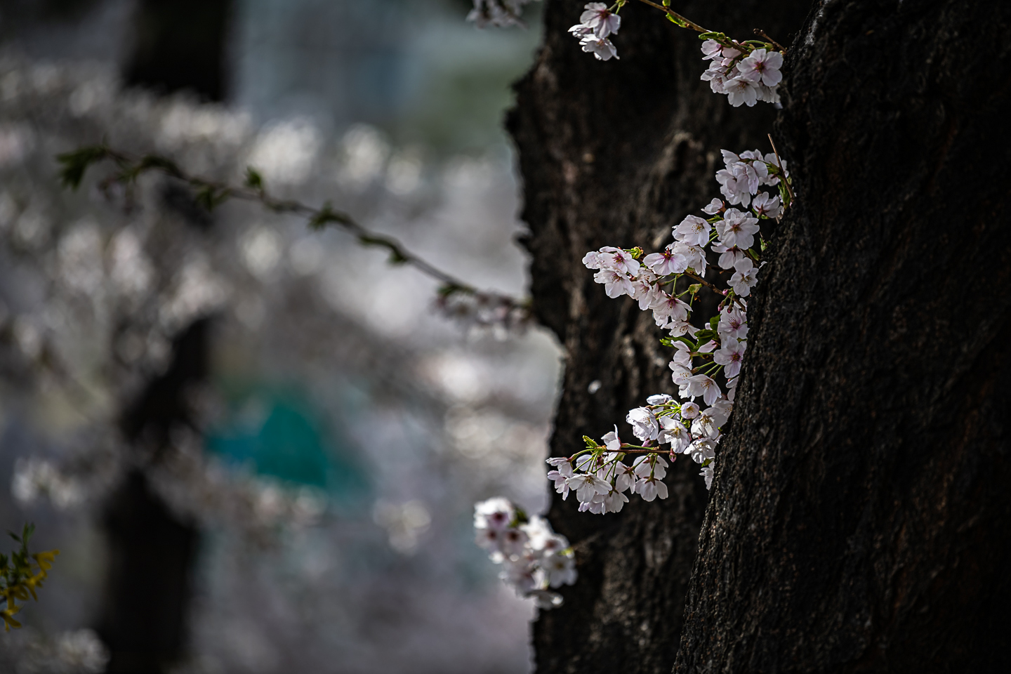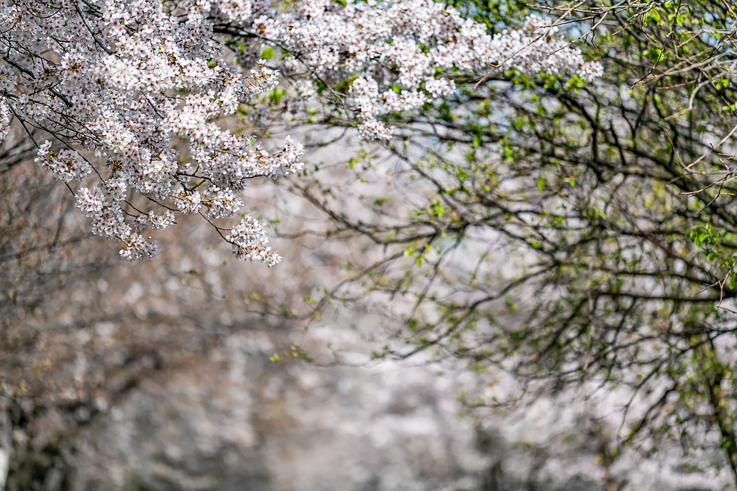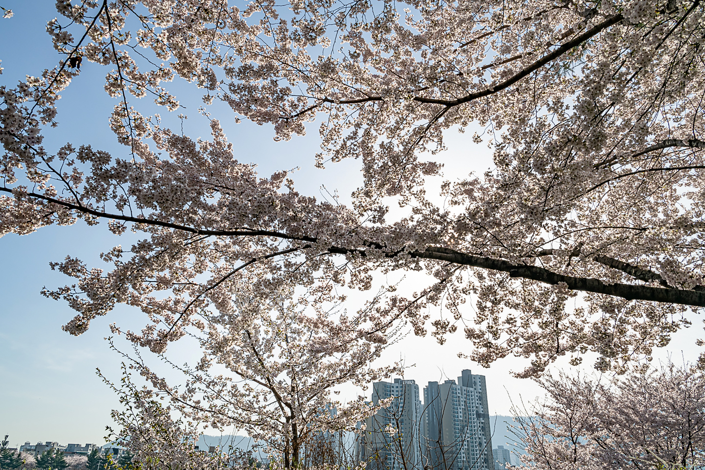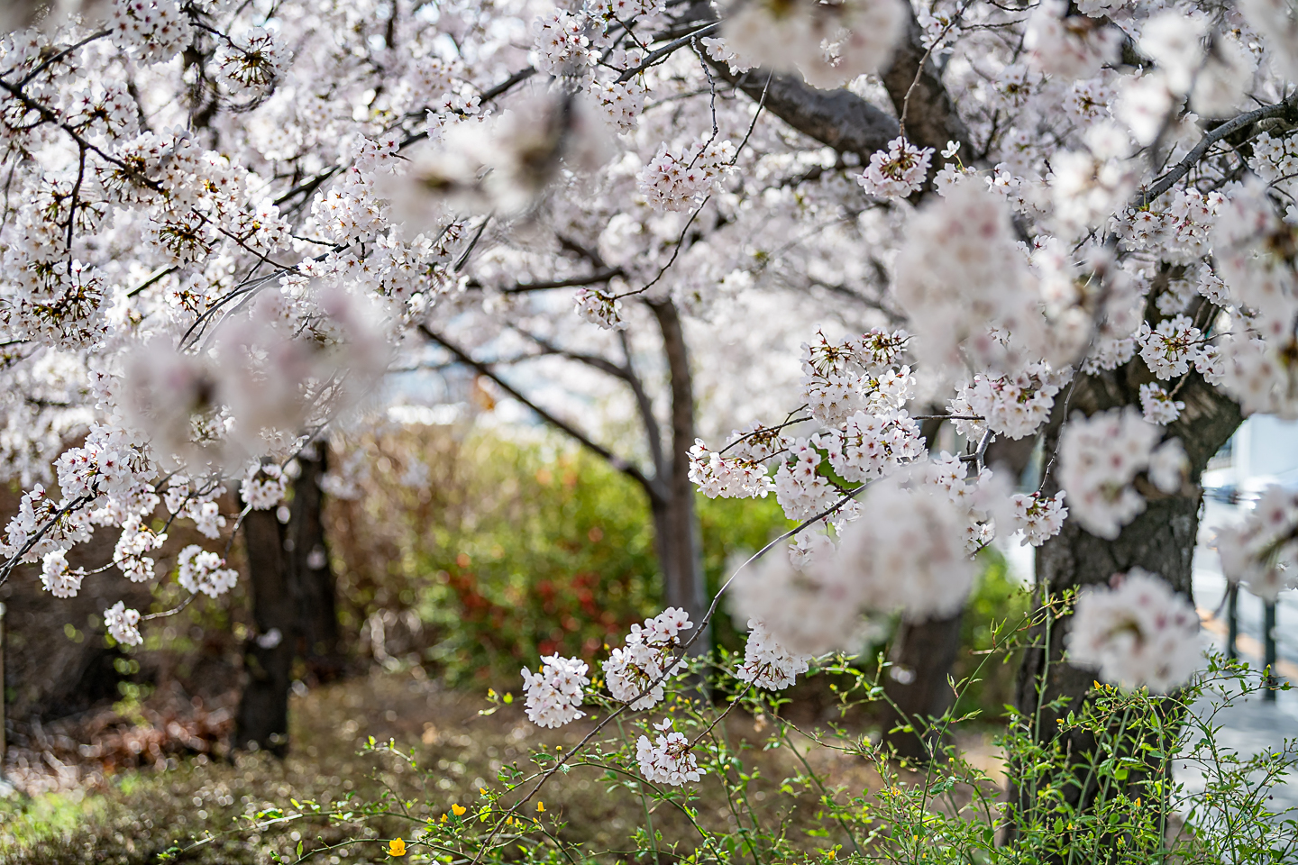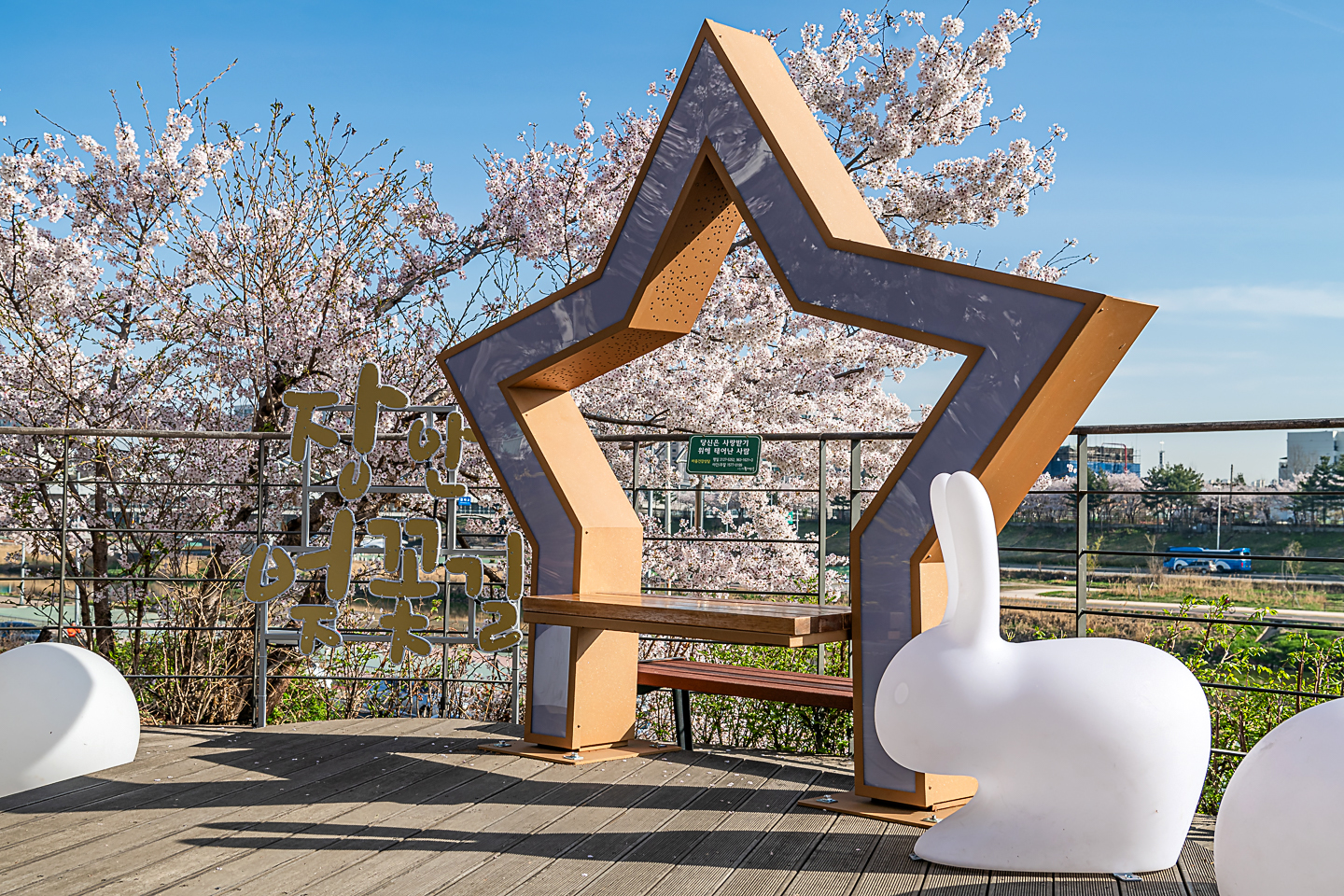 장안동 중랑천 벚꽃길에 벚꽃 터널과 함께 개나리, 목련, 철쭉, 산수유 등