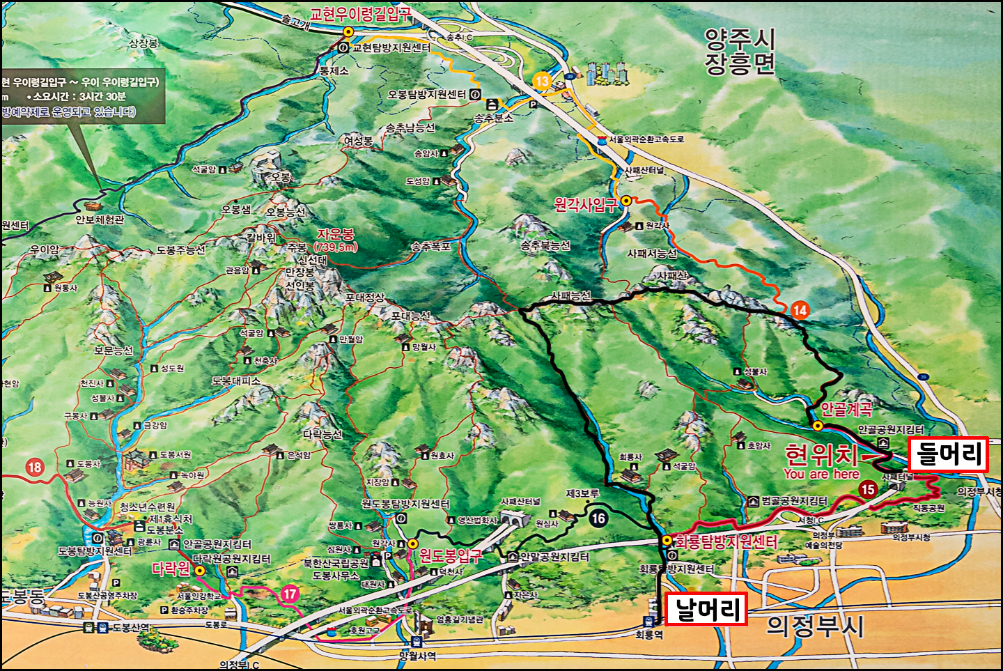 4코스 : 회룡탐방지원센터→회룡사→회룡사거리→범골능선삼거리→사패산