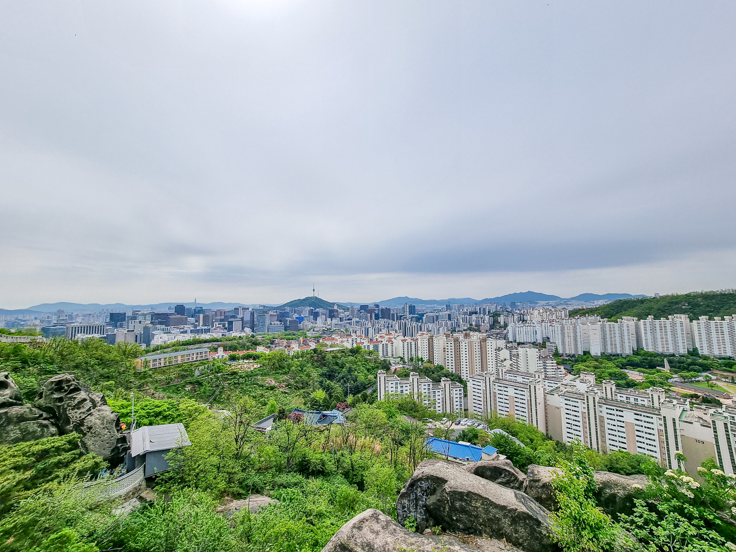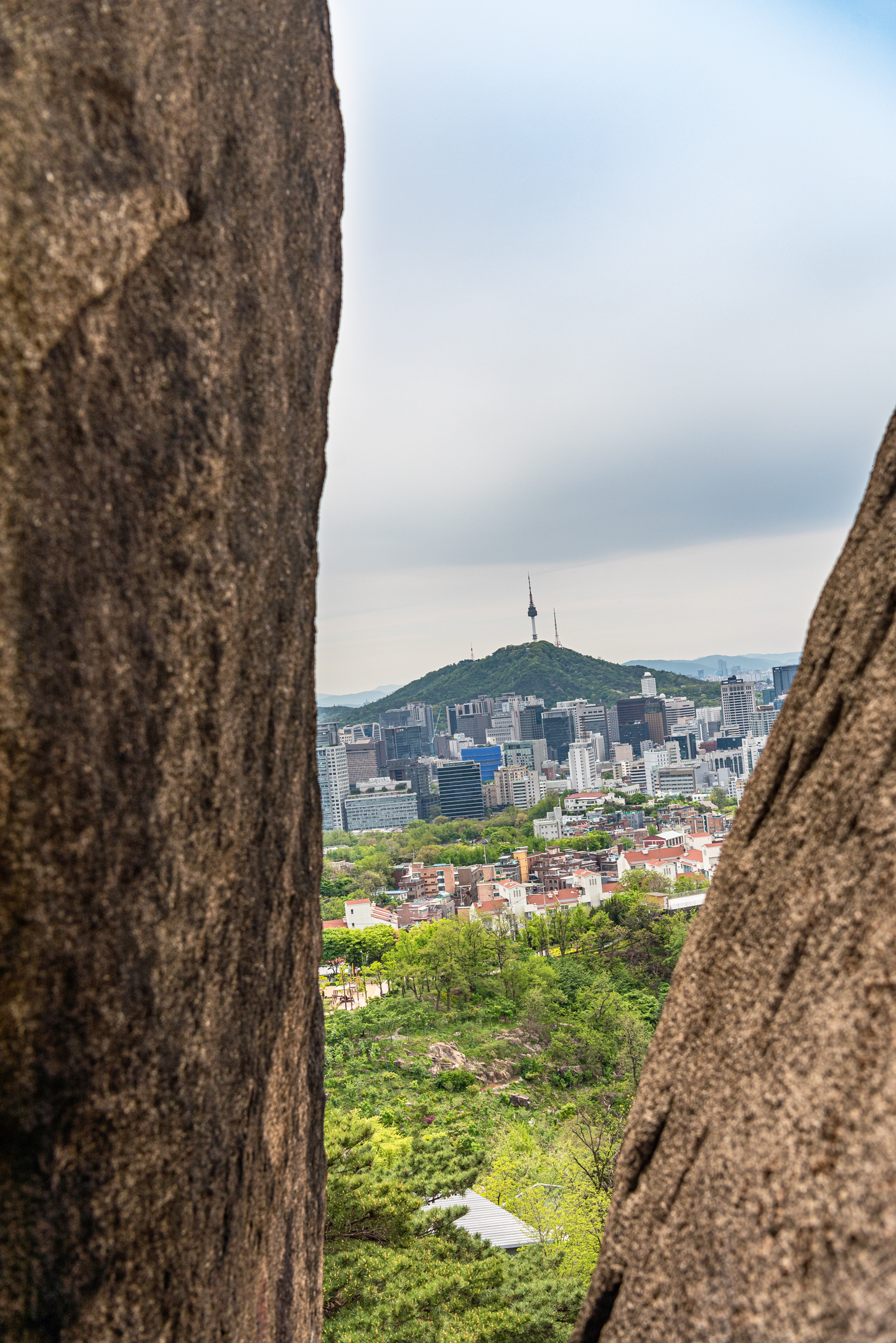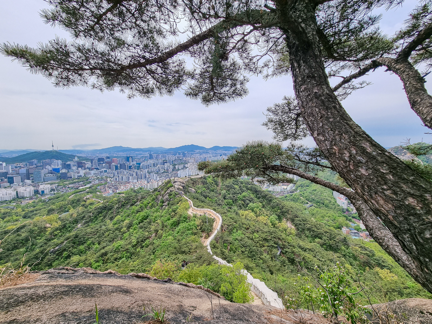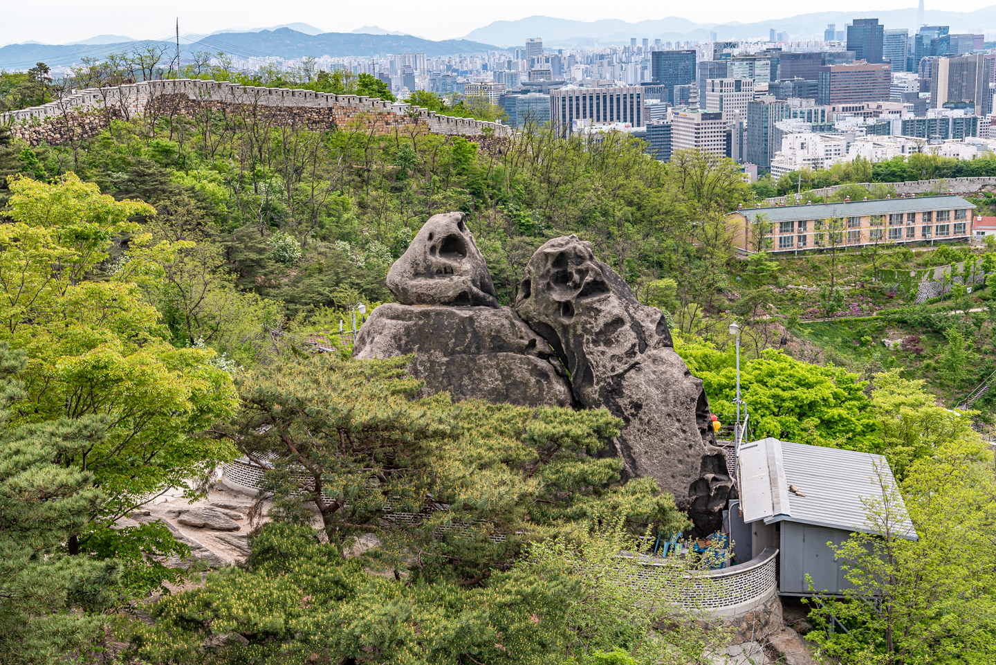 하산길 청운동 방면과 그 옆으로 기차바위.