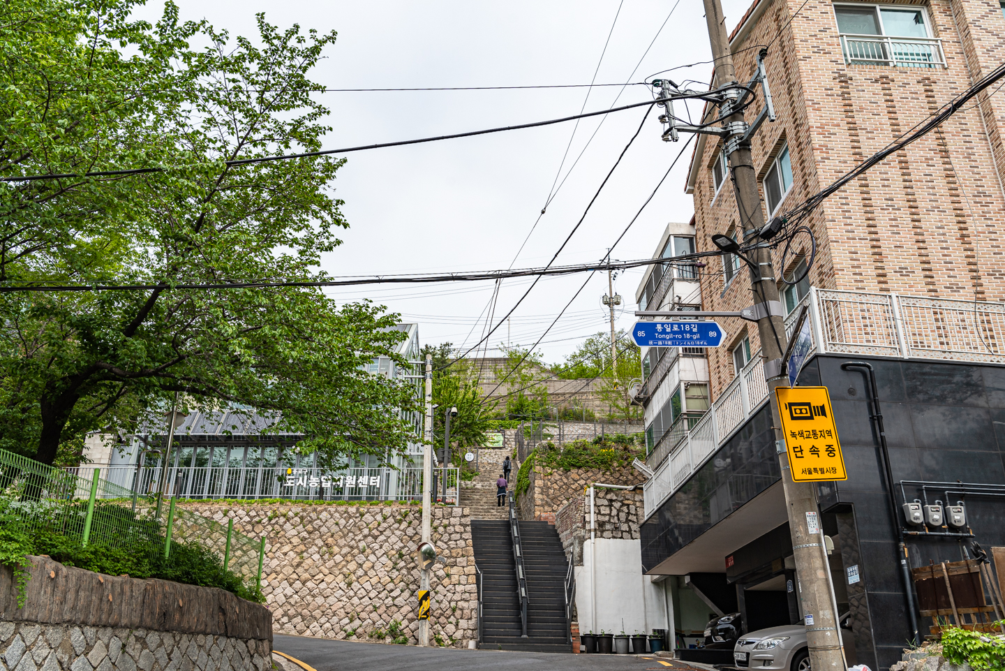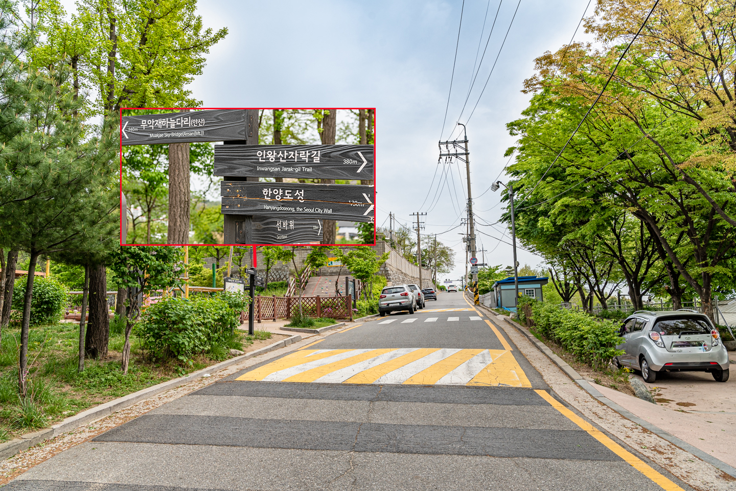 독립문 1번 출구에서 올라오는 길과 만나는 곳.