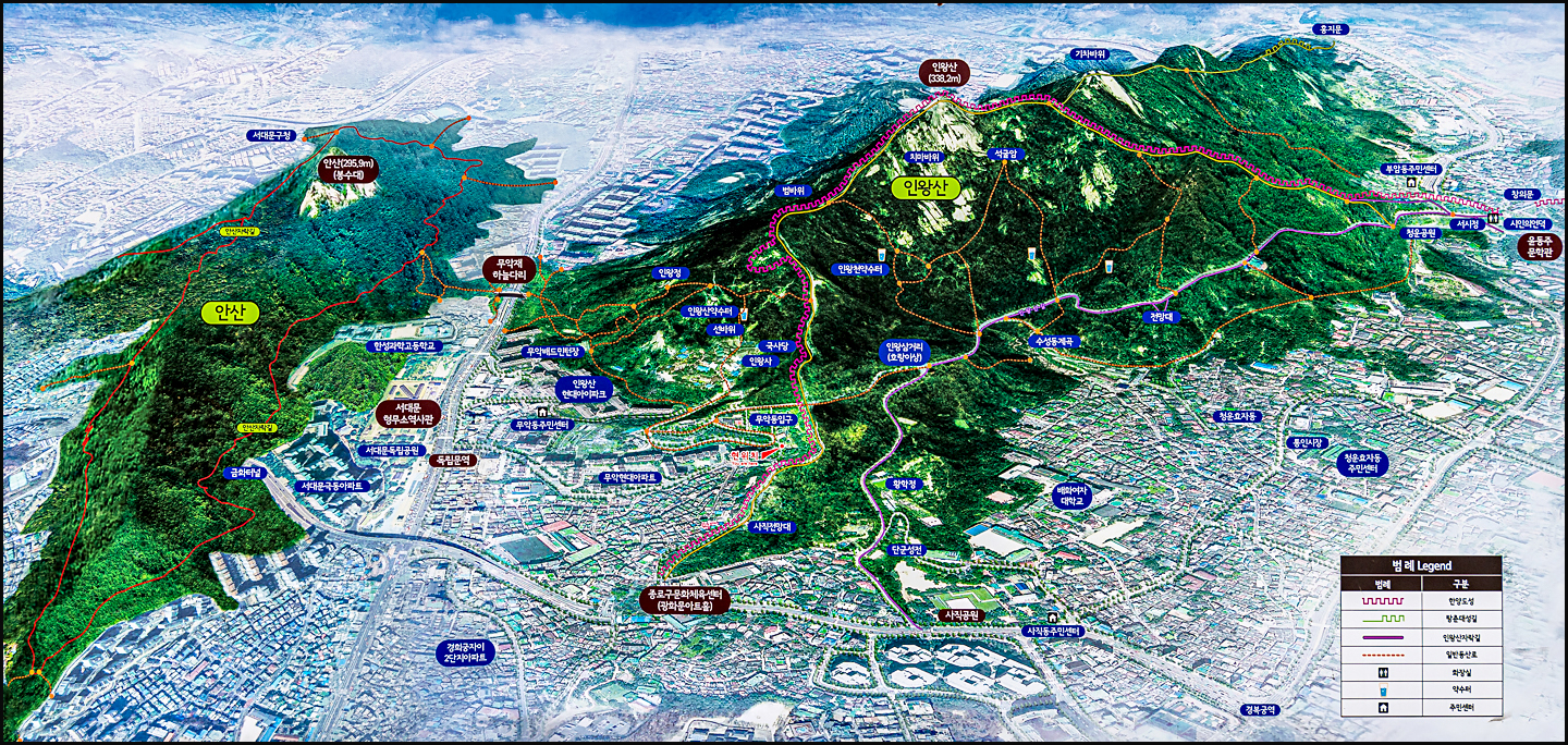 또한, 인왕산과 북악산은 산길을 벗어나면 안 된다. 정해진 길만 걸어야 한다.