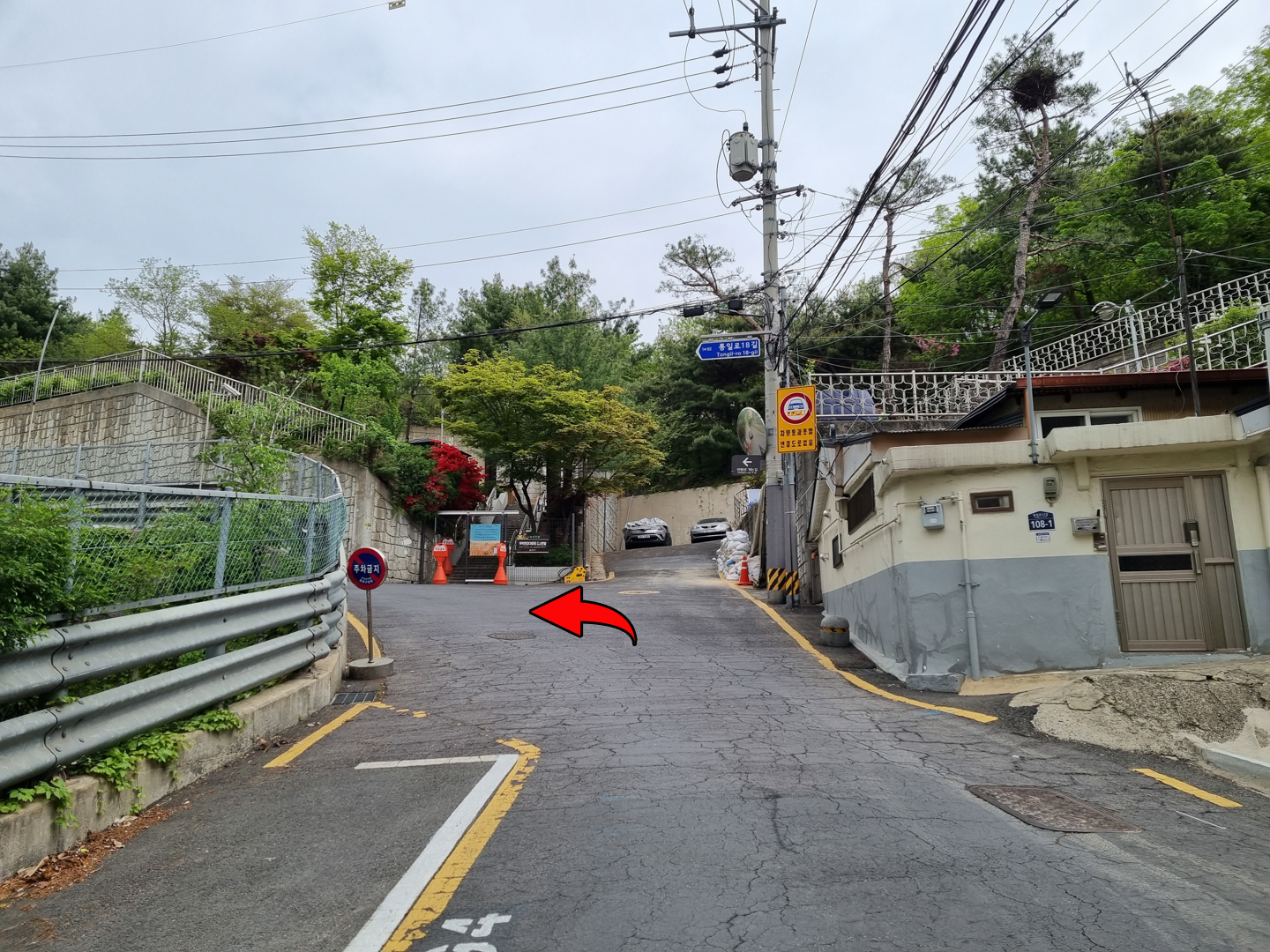 현대아파트 후문 길을 따라 올라간다.