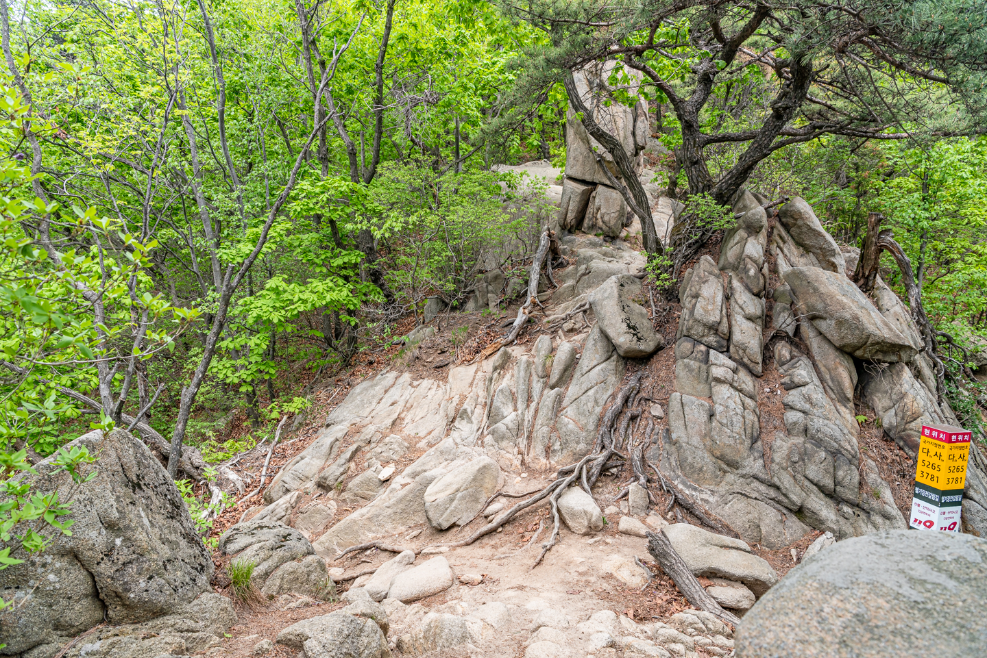 이곳에서 자운암 능선을 가다가 우측으로 학바위 능선으로 가는 길도 있다.