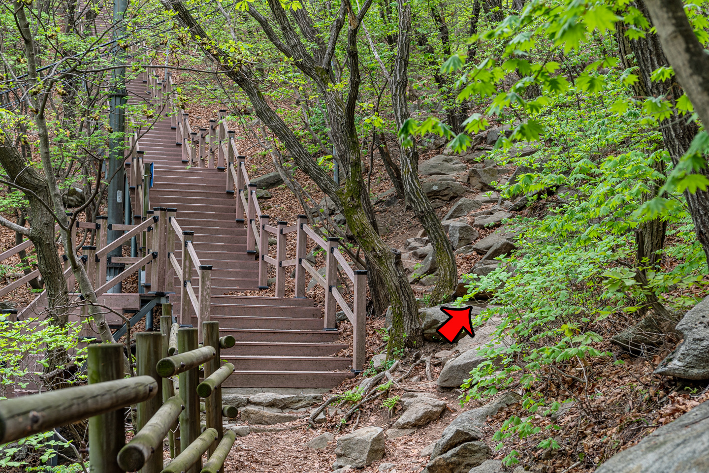 약수터 위로 등산로를 따라 계속 올라가면 된다.