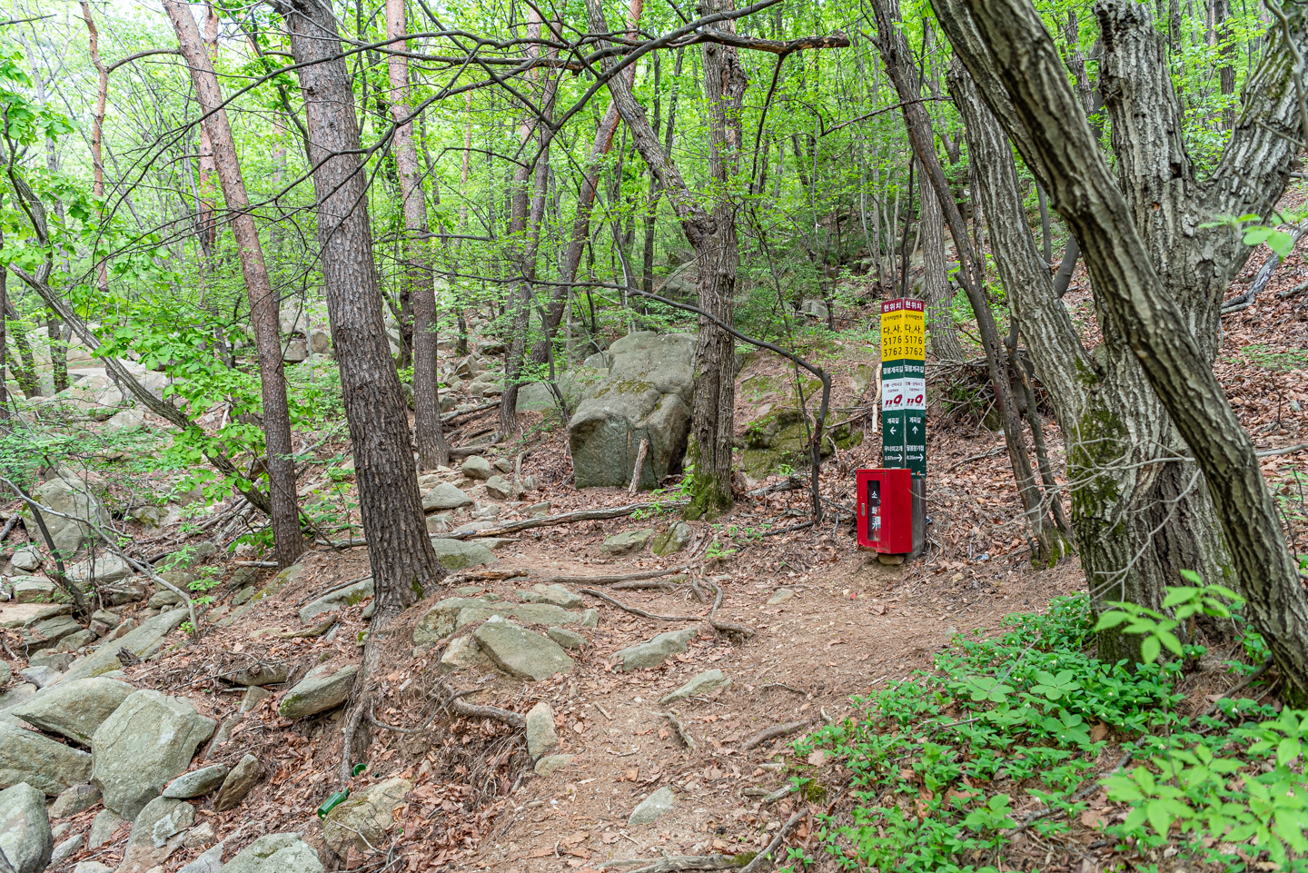 등산로를 따라 올라가면 자운암 능선에서 올라오는 길과 만나는 삼거리에서 우측으로 가면 연주 약수터 길이다.