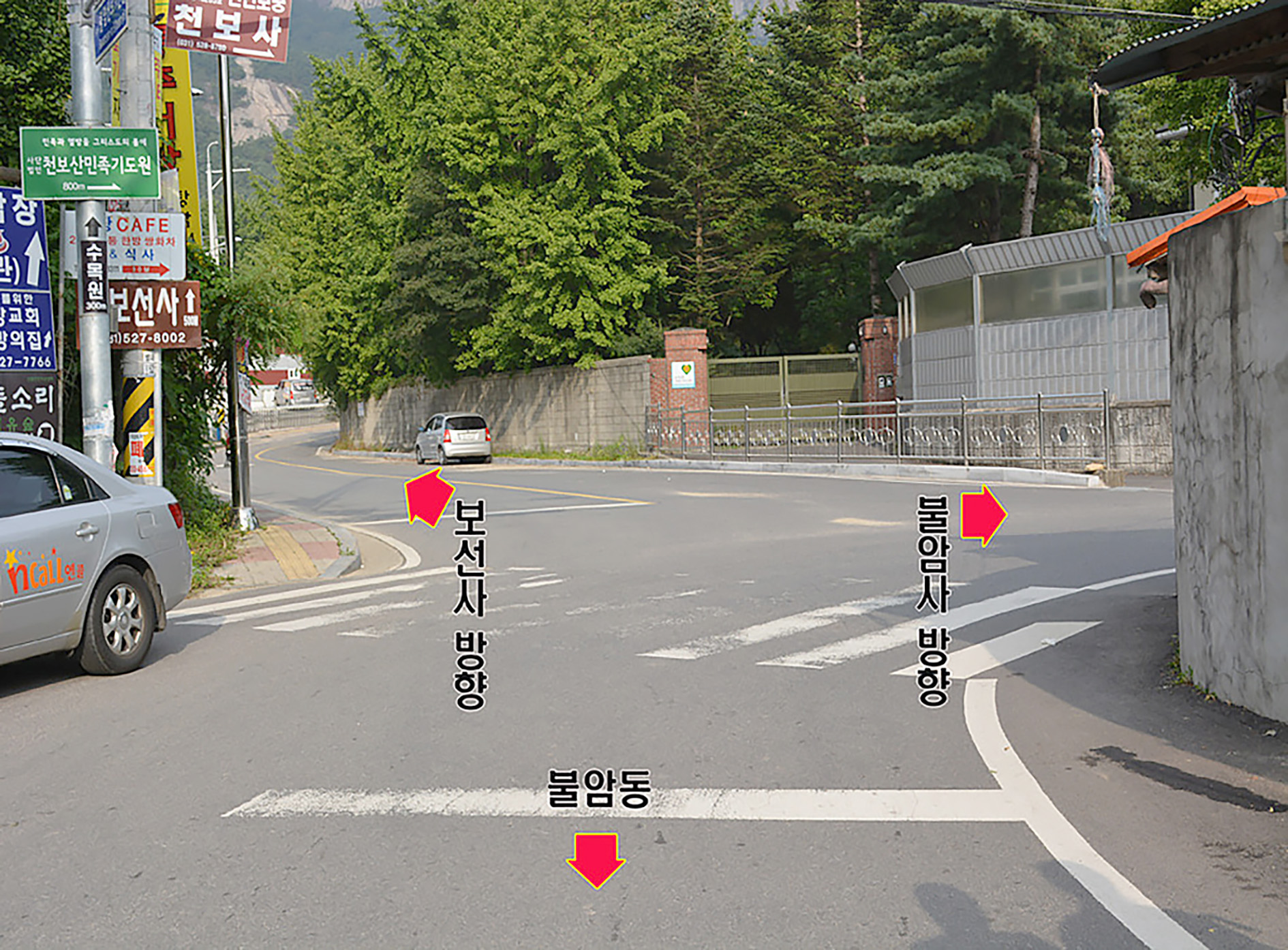 천보사와 불암사 갈림길에서 우측 불암사 방향으로 가면 된다.