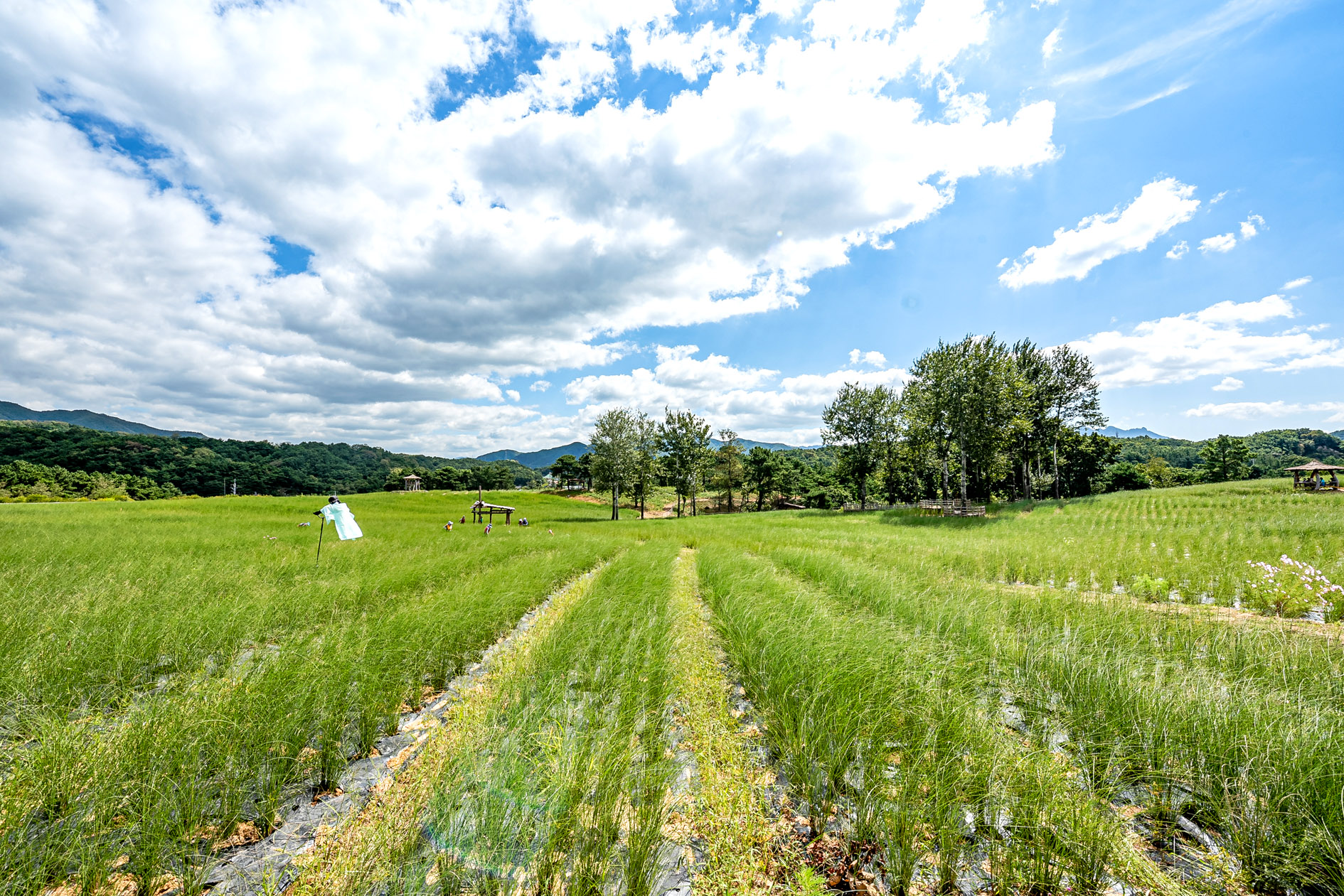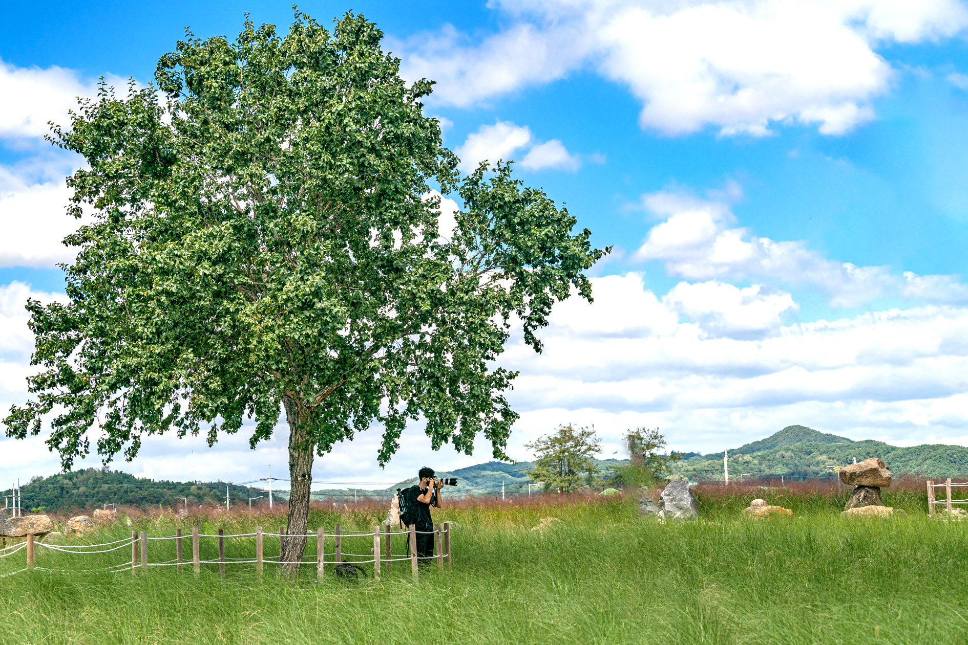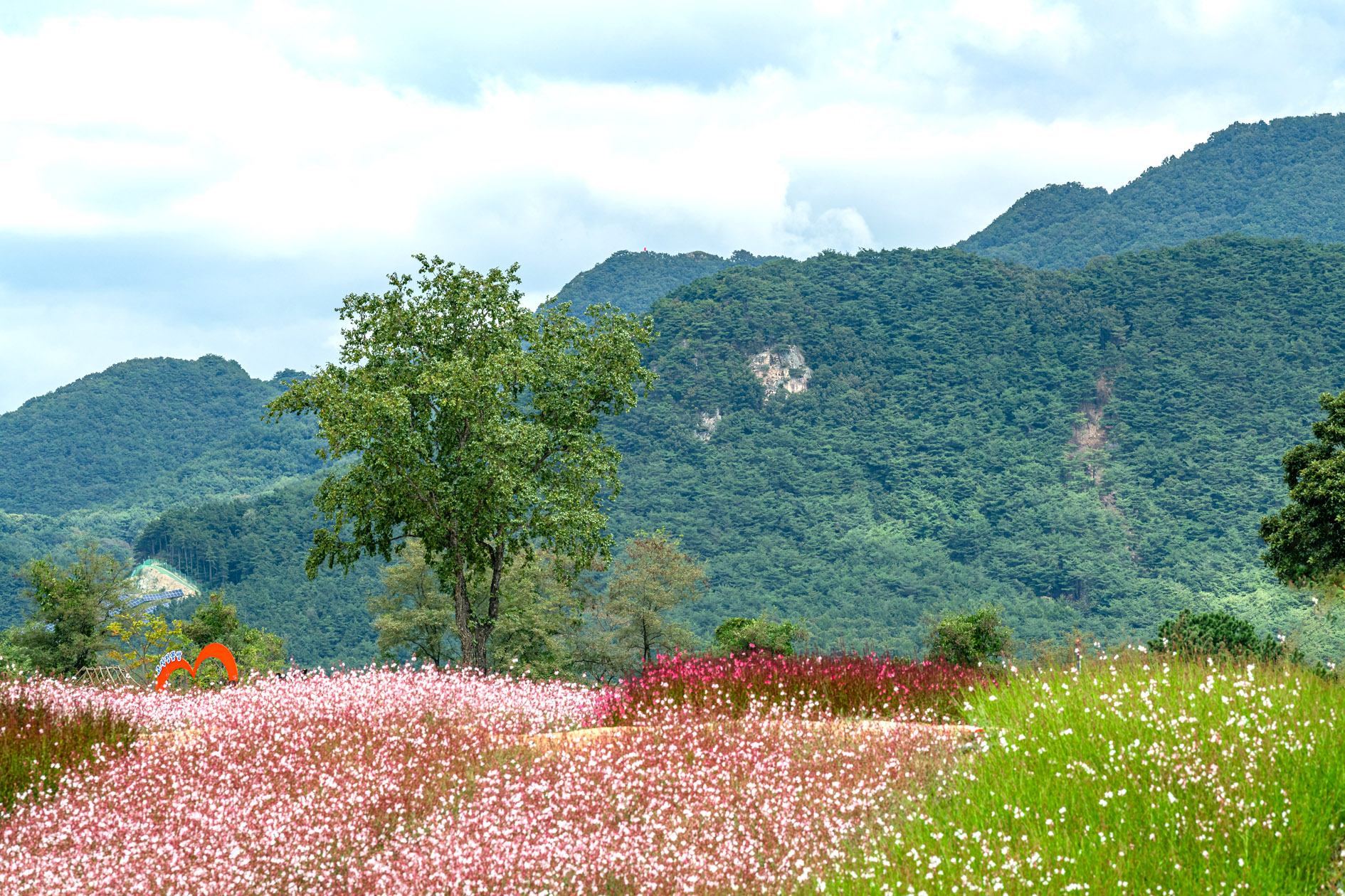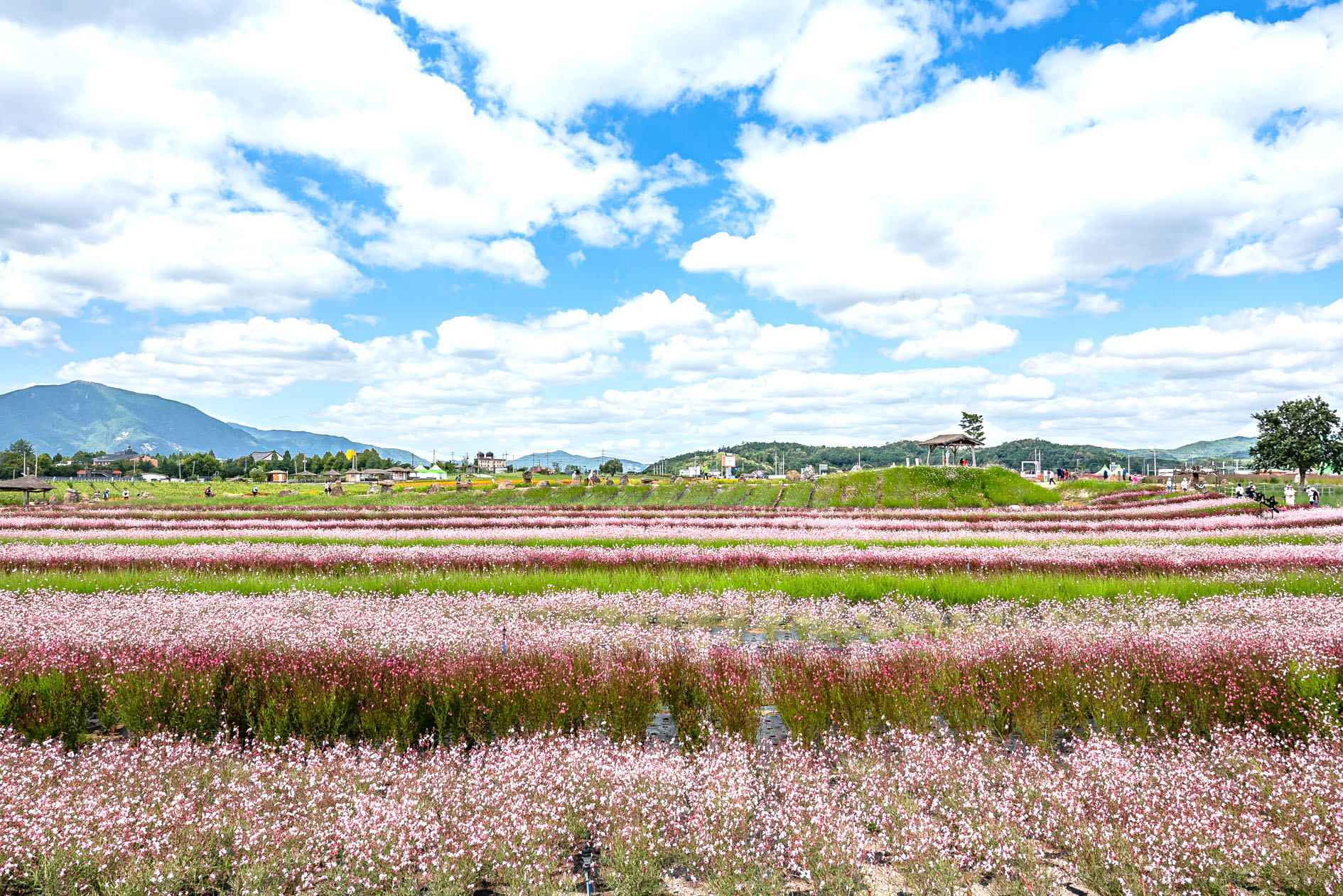 10월로 넘어가면 붉게 물든 댑싸리를 시작으로 드넓은 들판에 연분홍빛의 핑크 뮬리가