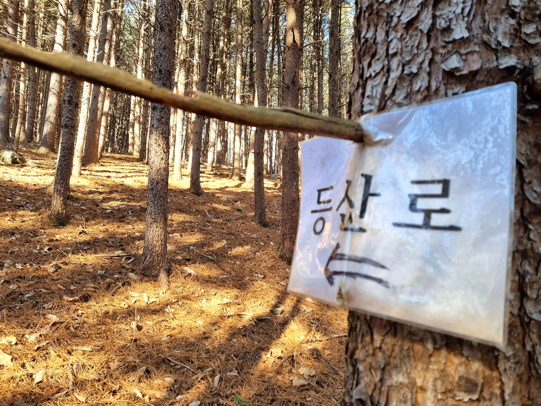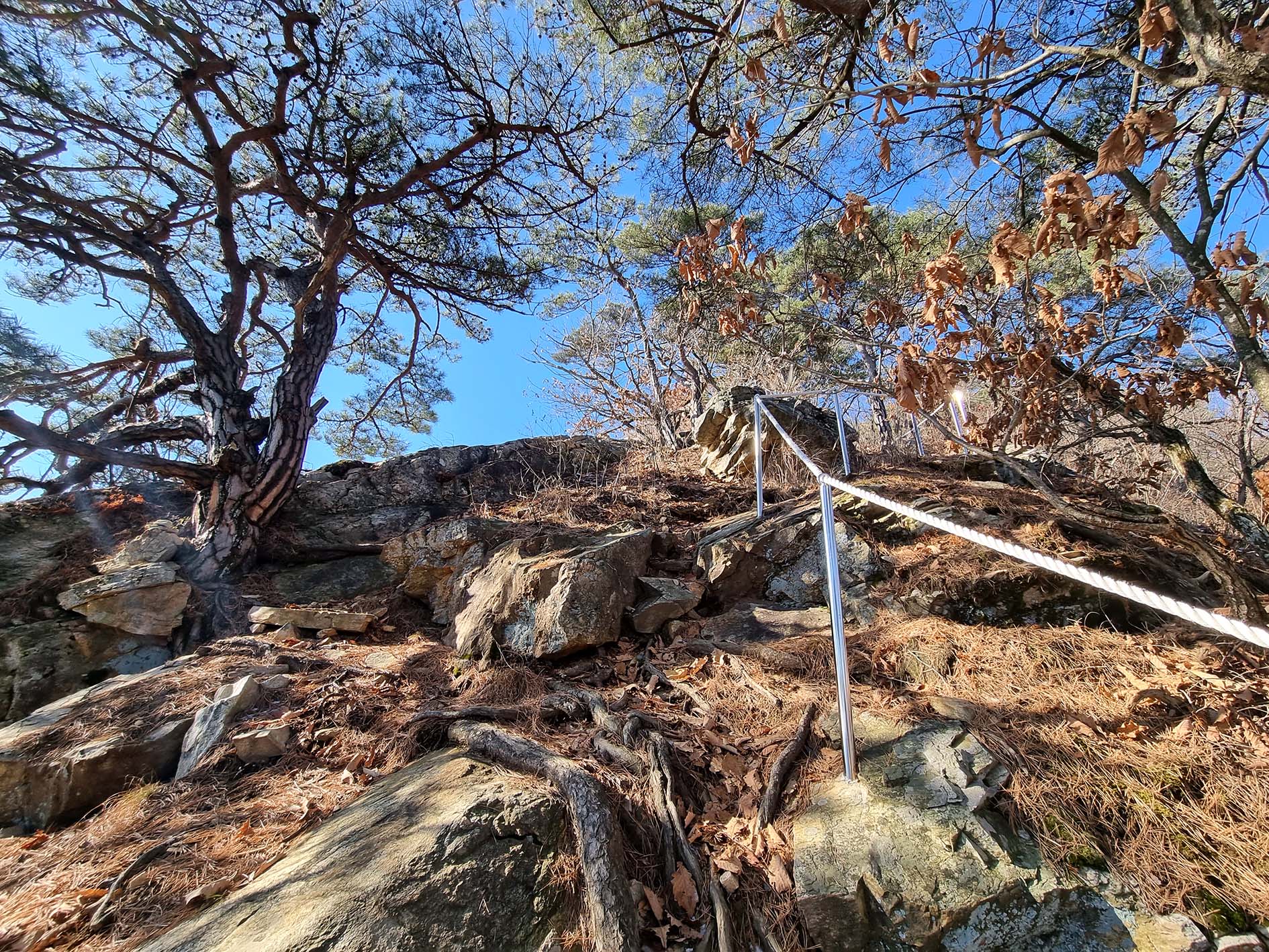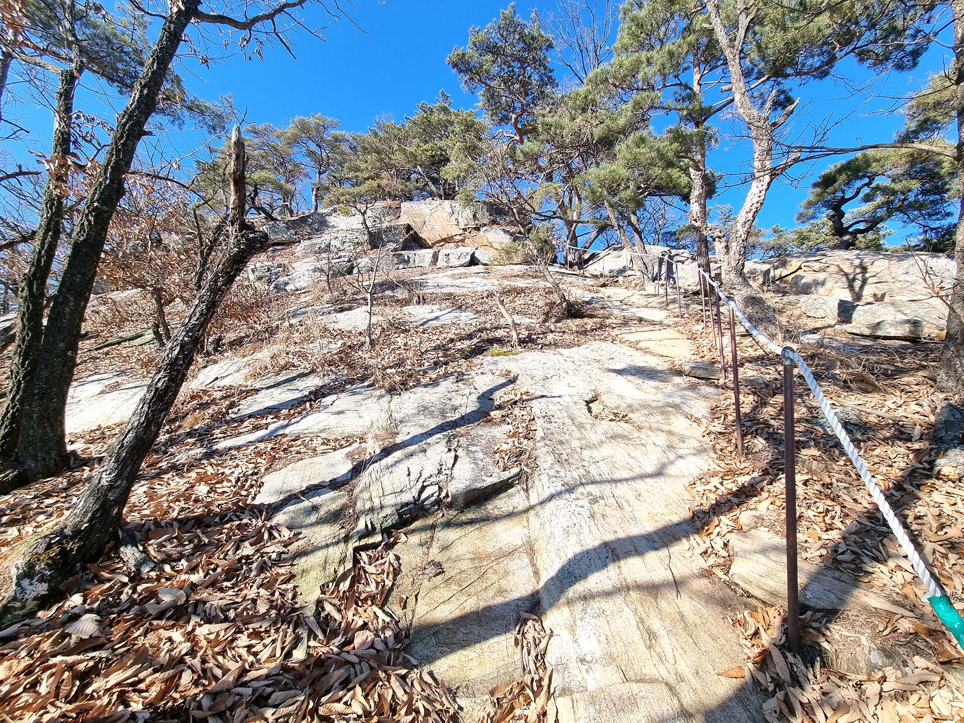 잣나무 그룹이 형성되어 있으며 그 사이로 오르면 된다.