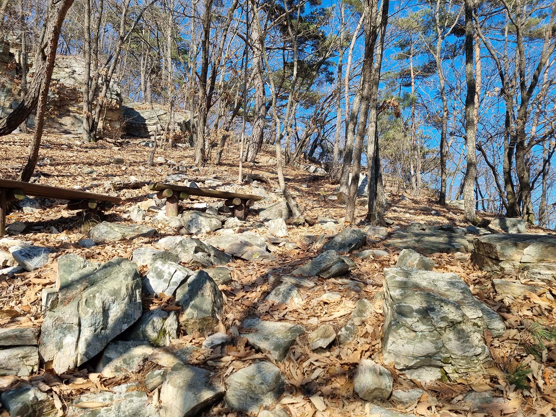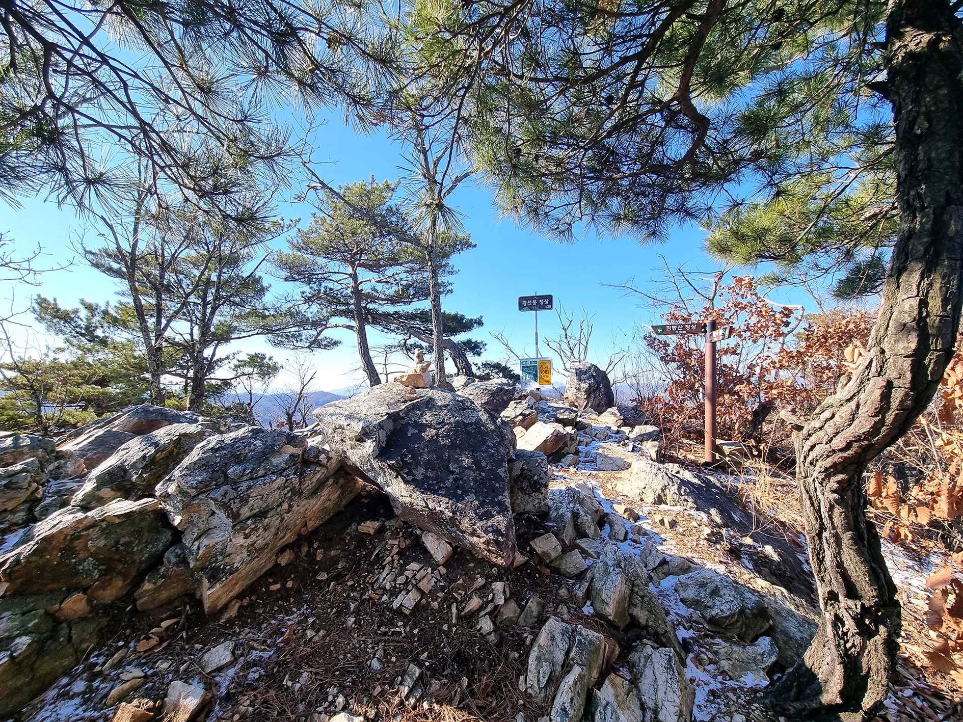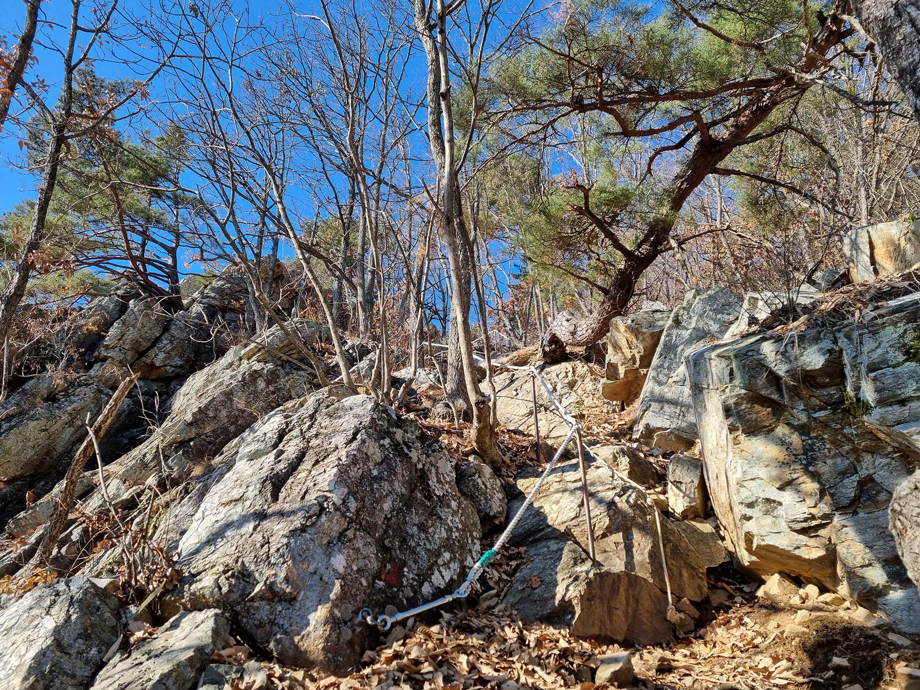 잣나무 그룹이 형성되어 있으며 그 사이로 오르면 된다.