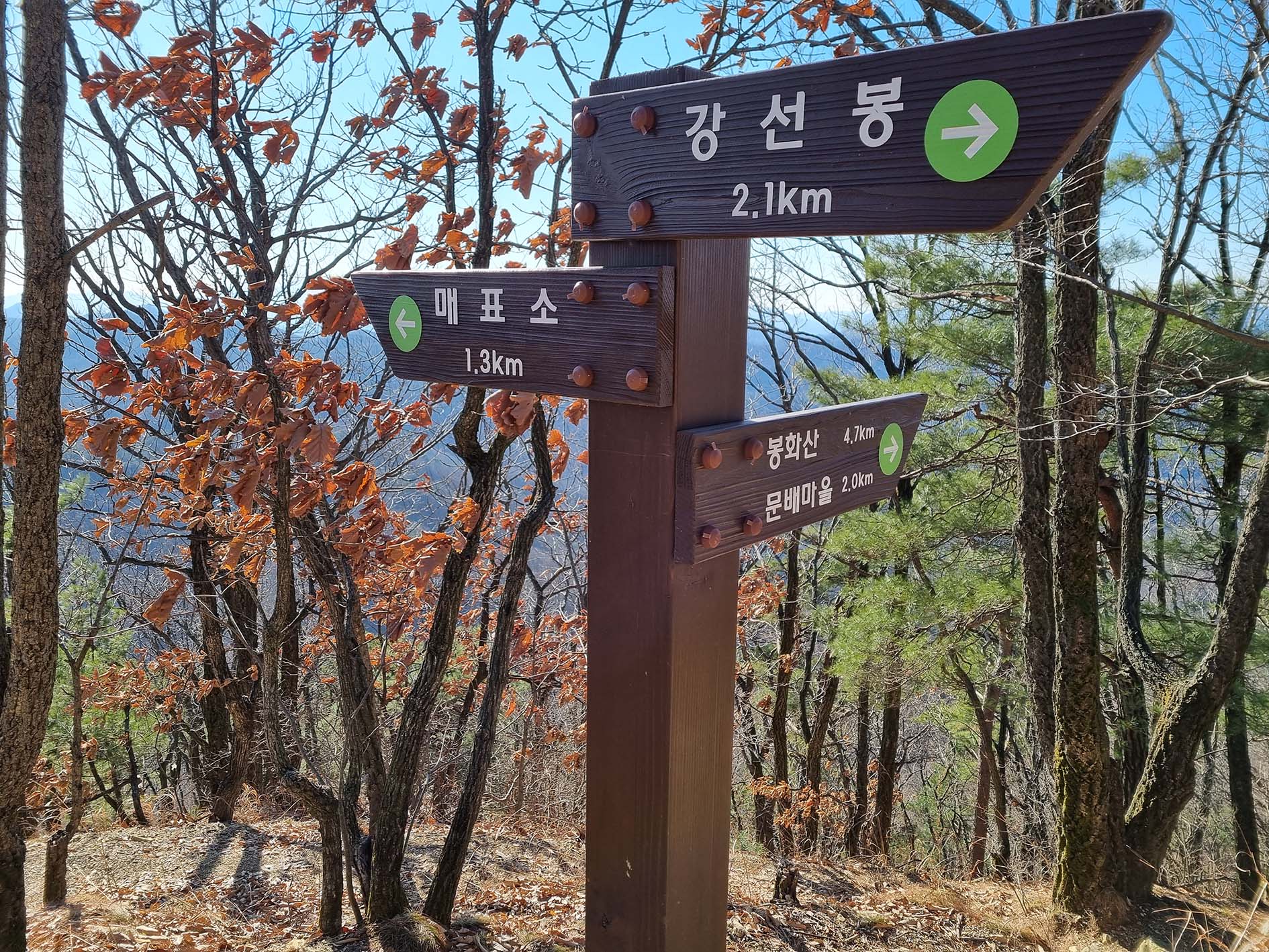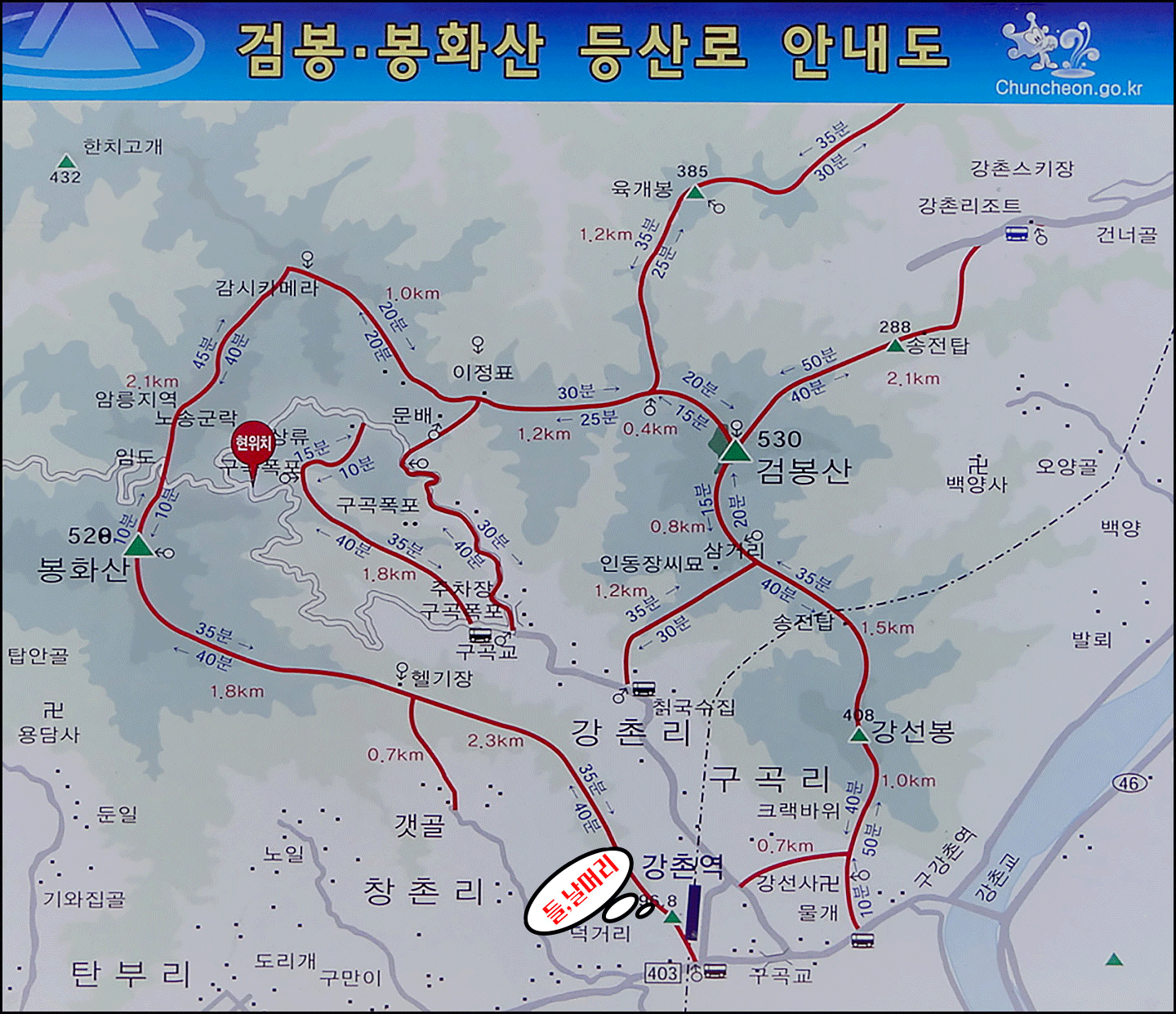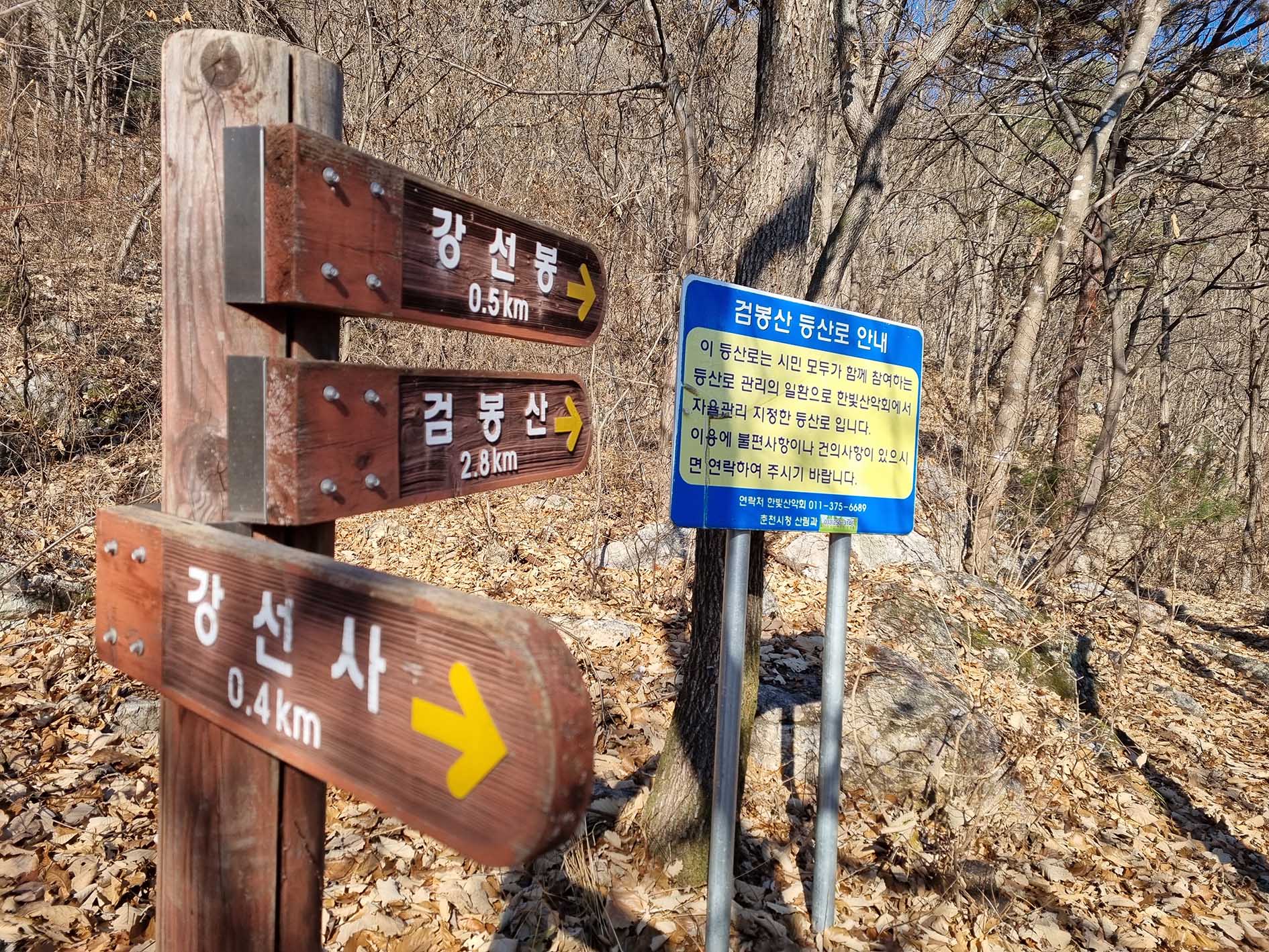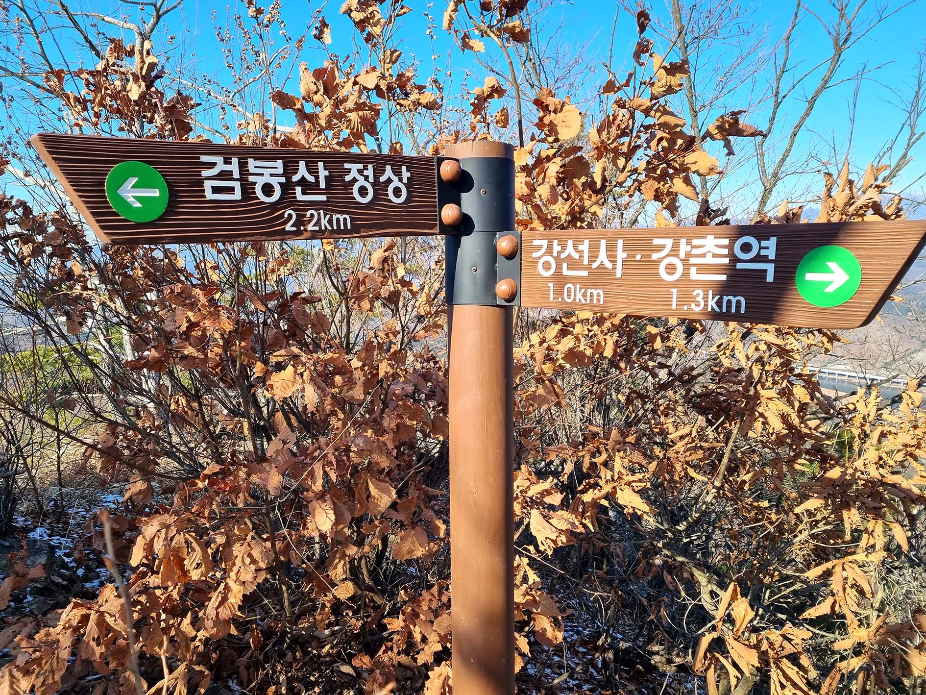 강촌역을 나오면 우측은 봉화산 방향이고 좌측은 강선봉과 검봉산을 오르는 길이다.