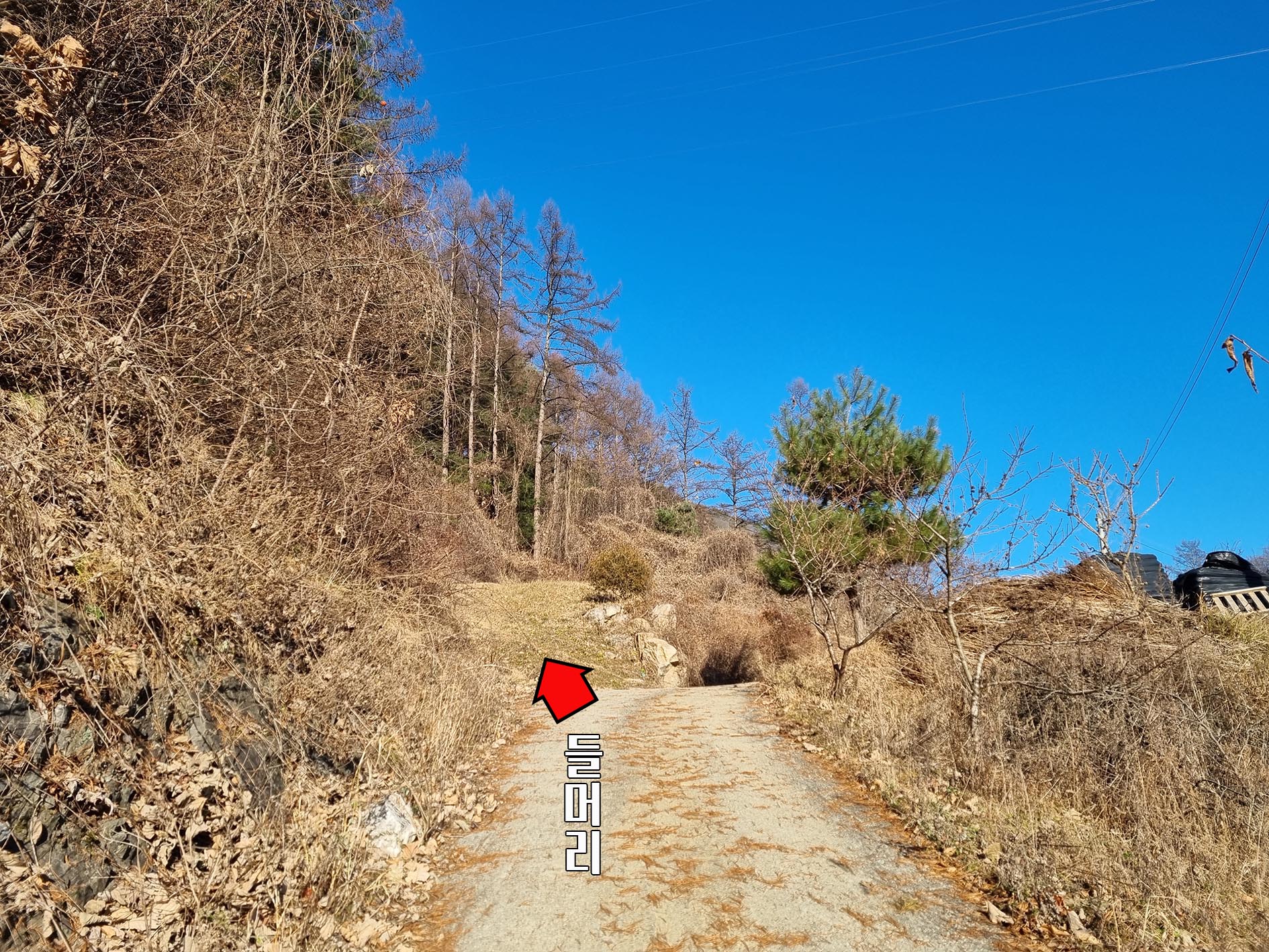첫 번째 삼거리에서 우측으로 들어선다. 한 칸 더 올라가 앞에 보이는 집 뒤로 도로를 따라가도 된다.