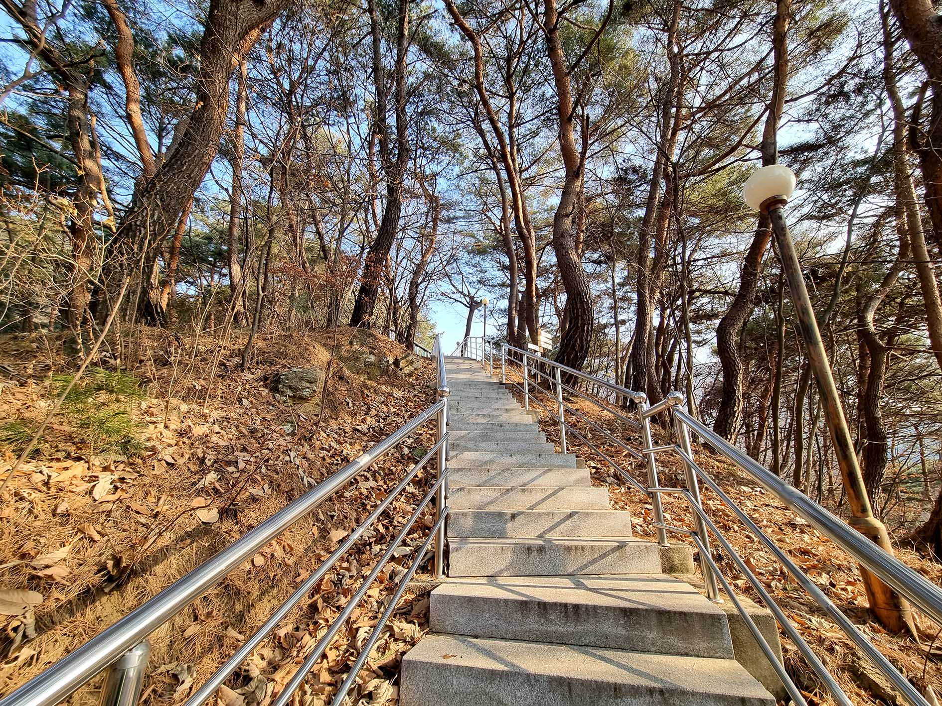 계단 중간에 우측으로 이정표가 있다.