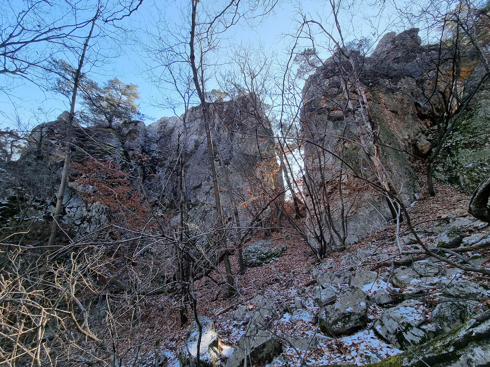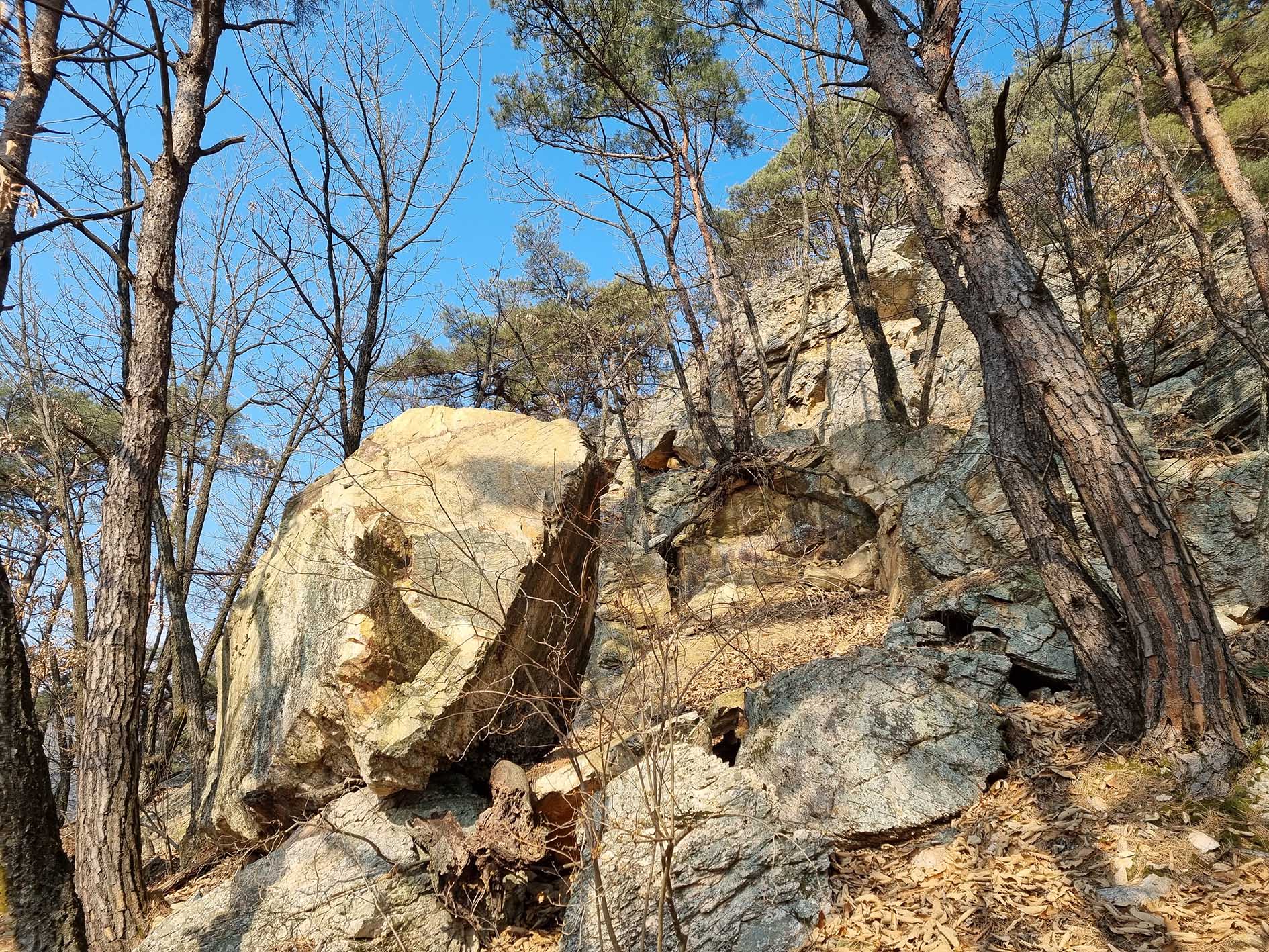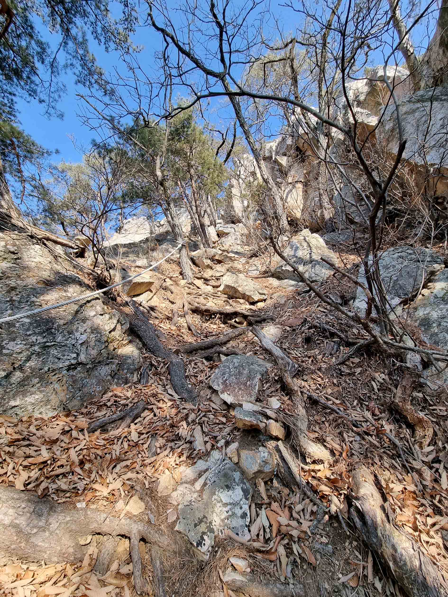 짧지만 슬랩 지대, 침니 지대 등 세미 록클라이밍의 연속이다,