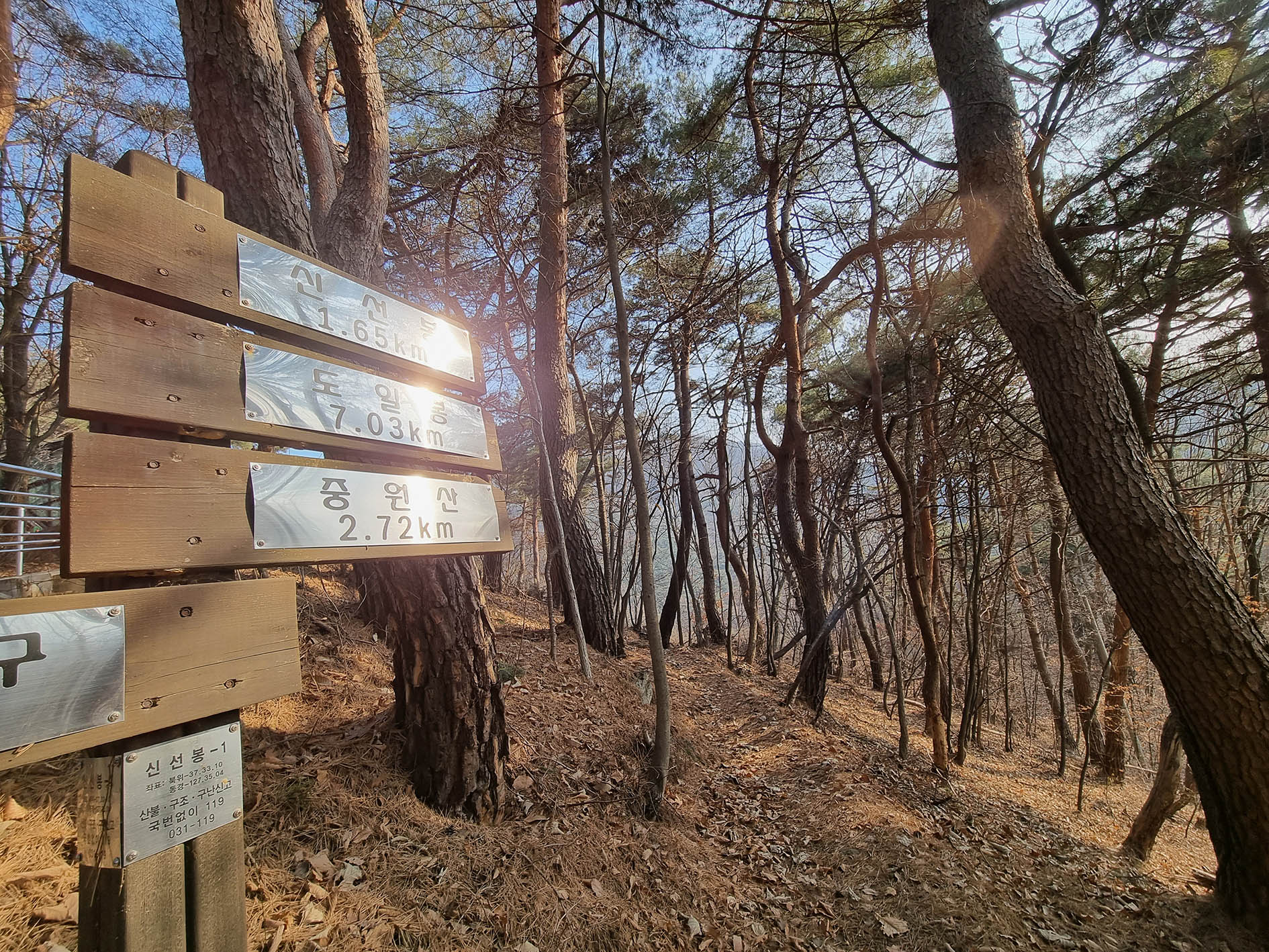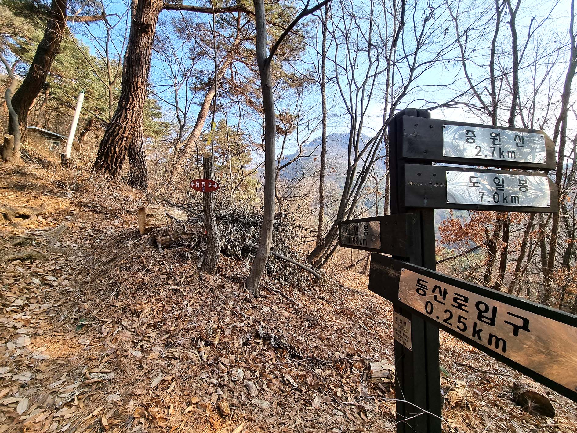 중원산과 용조봉 갈림길 삼거리.