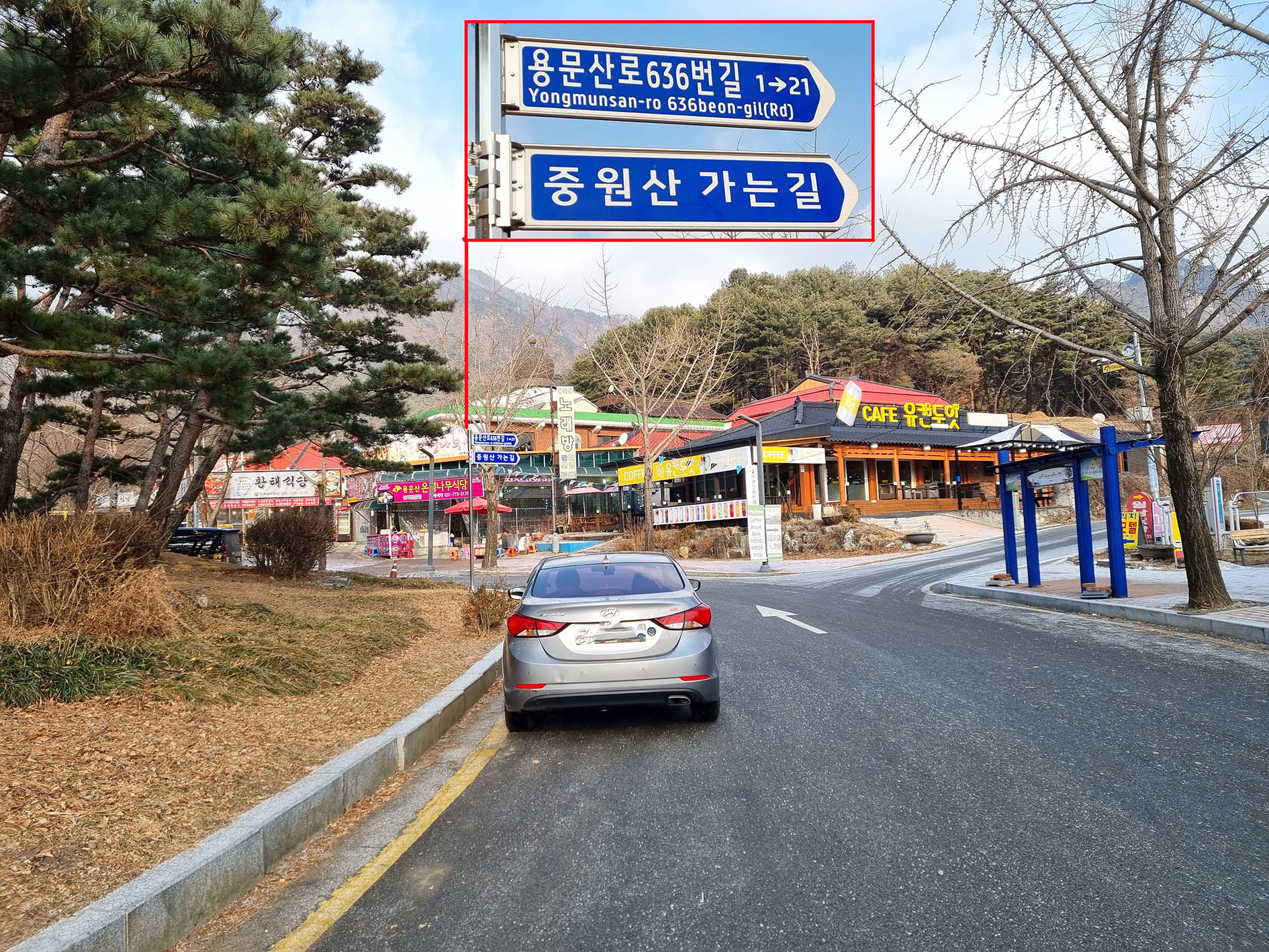 버스 종점인 용문산 관광지.