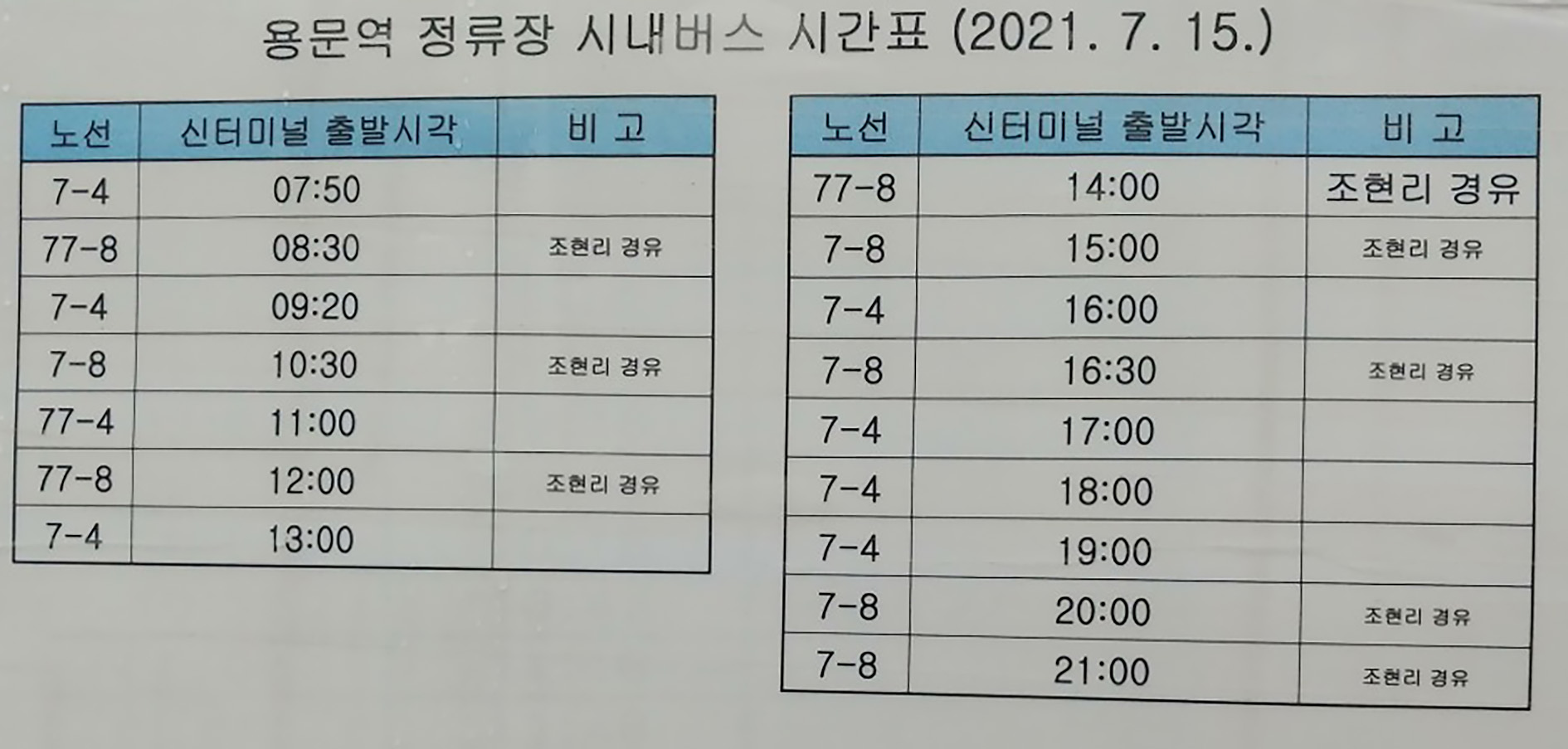 ▲용문역 버스 시간표▲