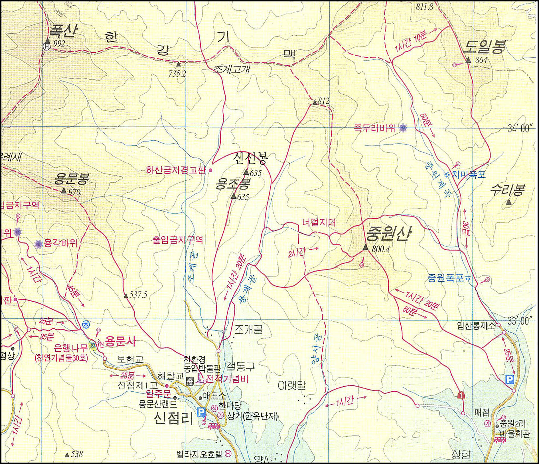 그중에서도 용문산과 폭산으로 이어지는 능선과 중원산 사이에 홀로 솟아나