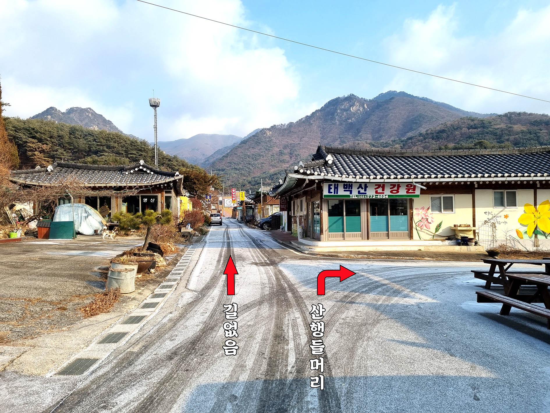 도로를 따라 올라간다.